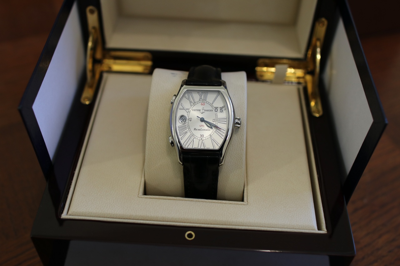Прекрасный Michelangelo , куплены в 2015 году! Одевались очень редко , следы носки минимальны! Очень большая редкость увидеть Michelangelo с карточкой нового образца ( Bubble Tag ) Соответственно полный комплект документов!