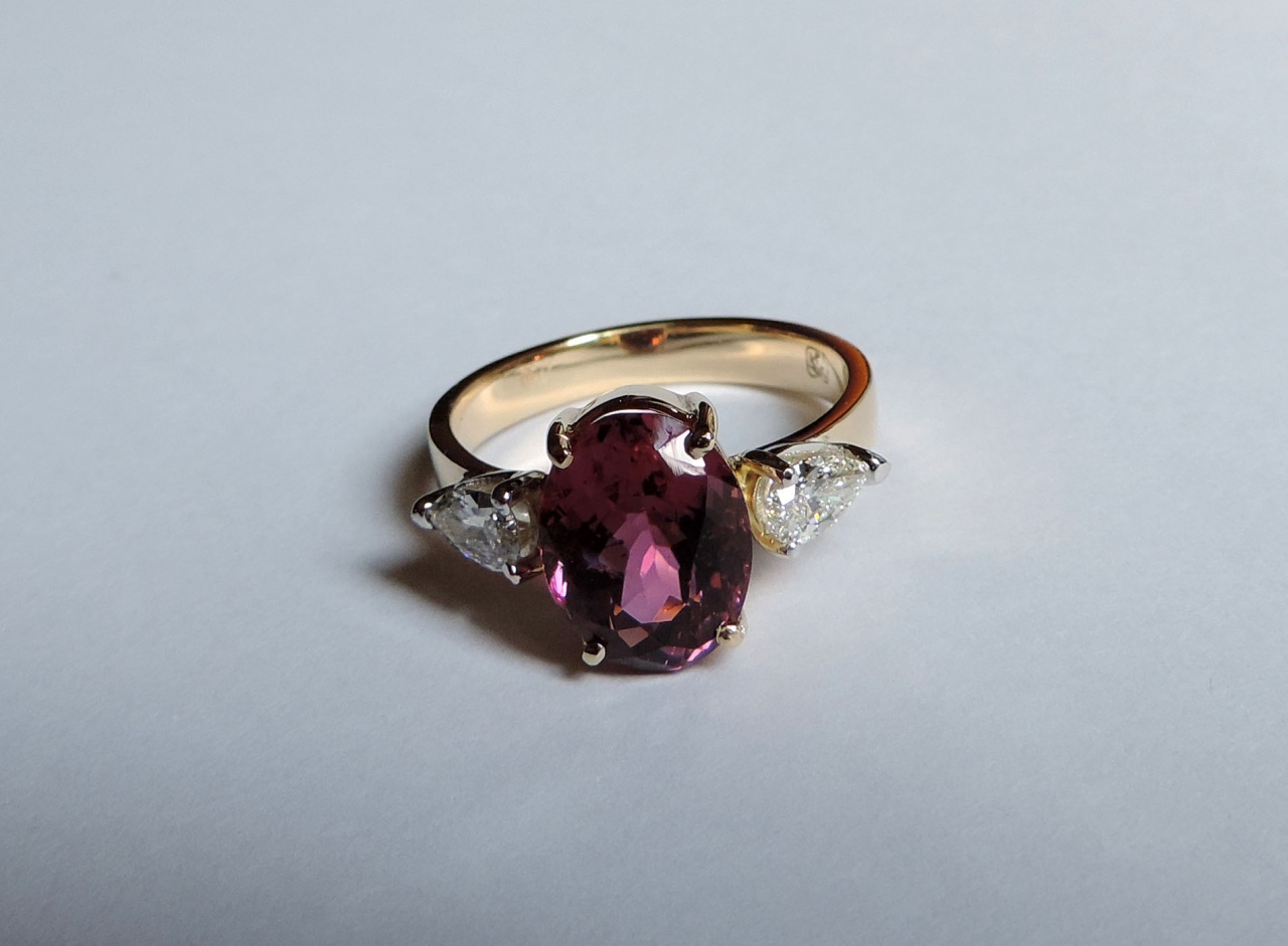 Кольцо с натуральным ярким турмалином-рубеллитом без коричневых оттенков 4.2 карата.