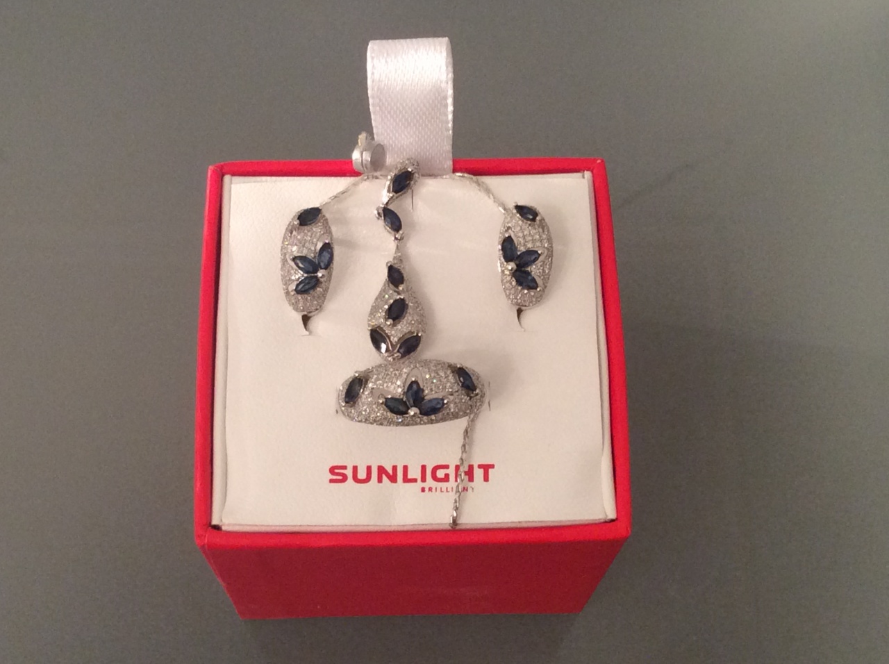 Прекрасный новый золотой комплект из белого золота с сапфирами, бриллиантами. Без торга.