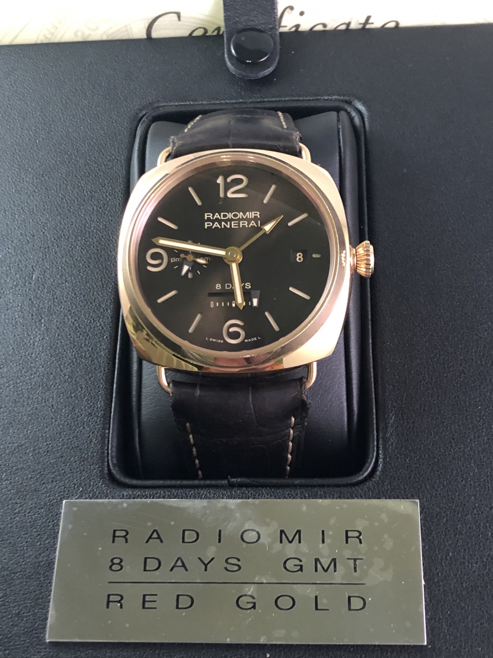 Ultra rare!!! PANERAI RADIOMIR 8 DAYS GMT ORO ROSSO PAM00395 Rose Gold