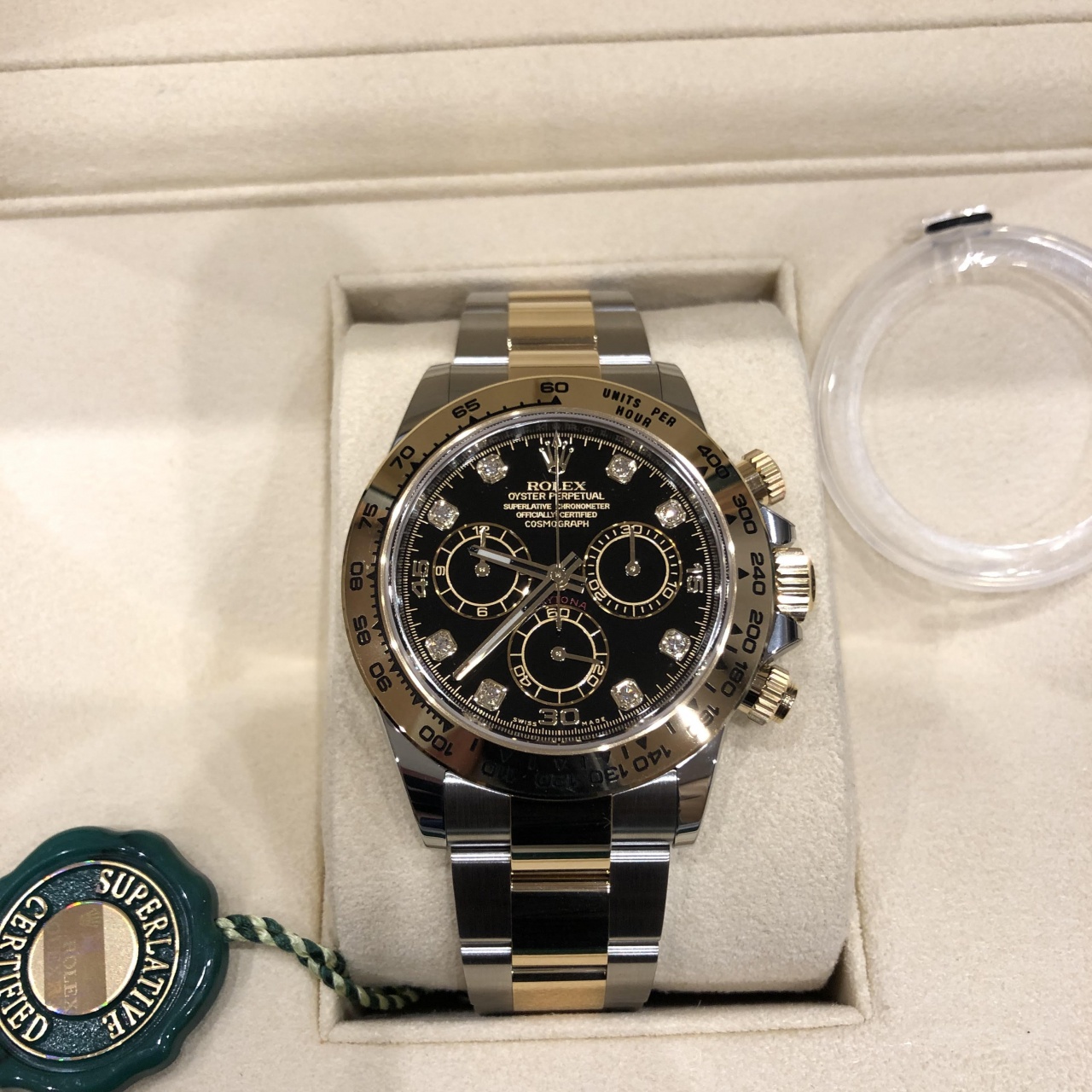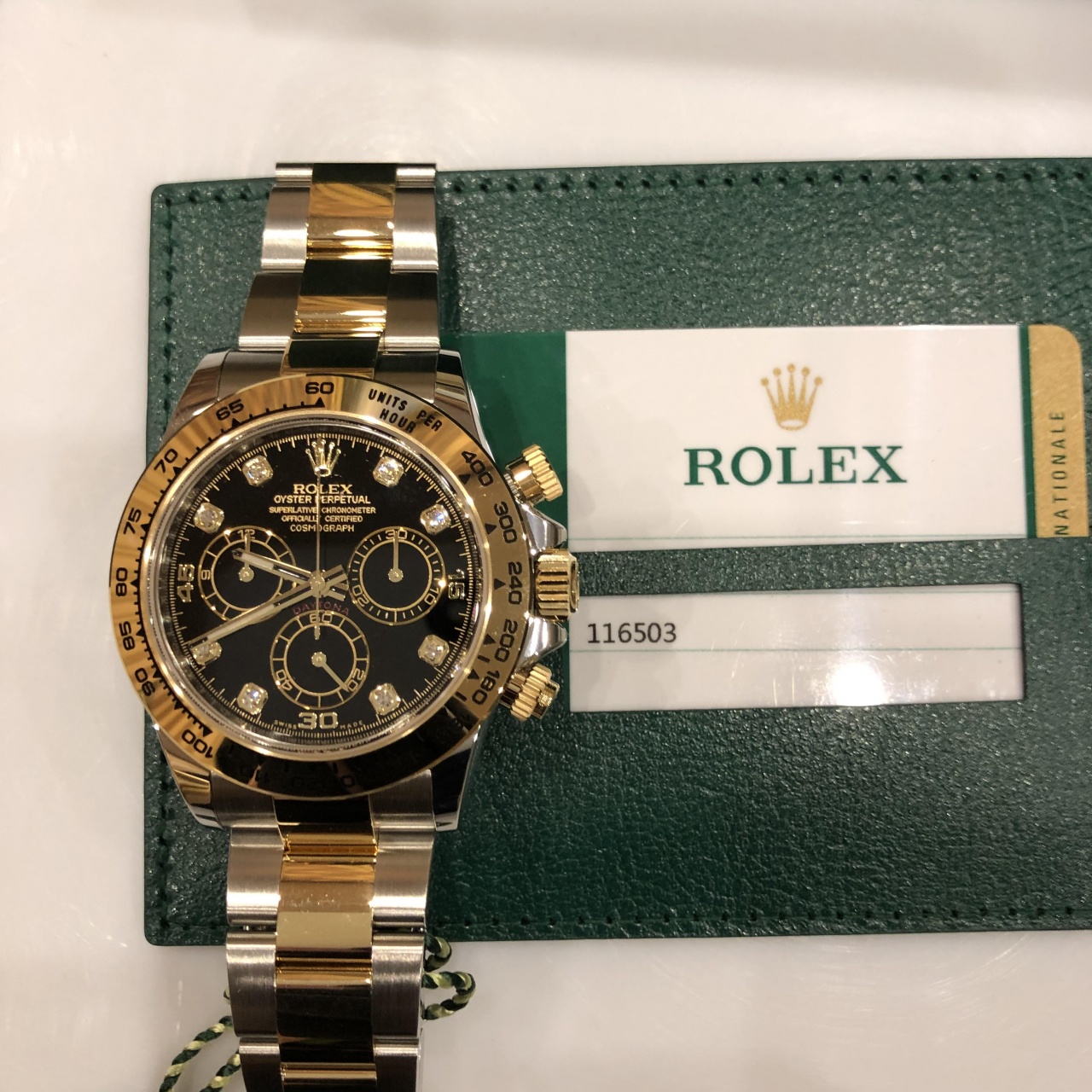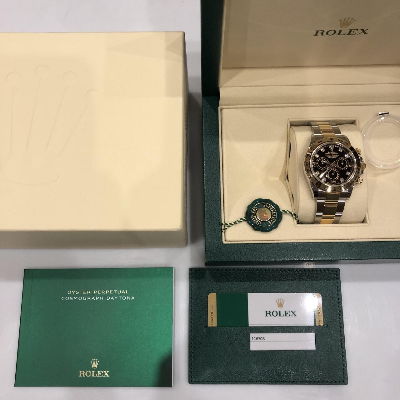 Часы Rolex Cosmograph Daytona 116503 выполнены из стали 904L и 18‑каратного желтого золота, представлены с черным циферблатом и были разработаны специально для профессиональных автогонщиков. С 2016 года данная модель Rolex Daytona меняет свой референс с 116523 на 116503. Связаны изменения с механизмом, критерии которого были пересмотрены компанией в 2015 году. Калибр прошел сертификацию на присвоение статуса сверхточного хронометра Rolex, этот уникальный статус дает возможность выдерживать погрешность хода в -2/+2 сек/сутки. Так же международная гарантия была продлена на 5 лет.