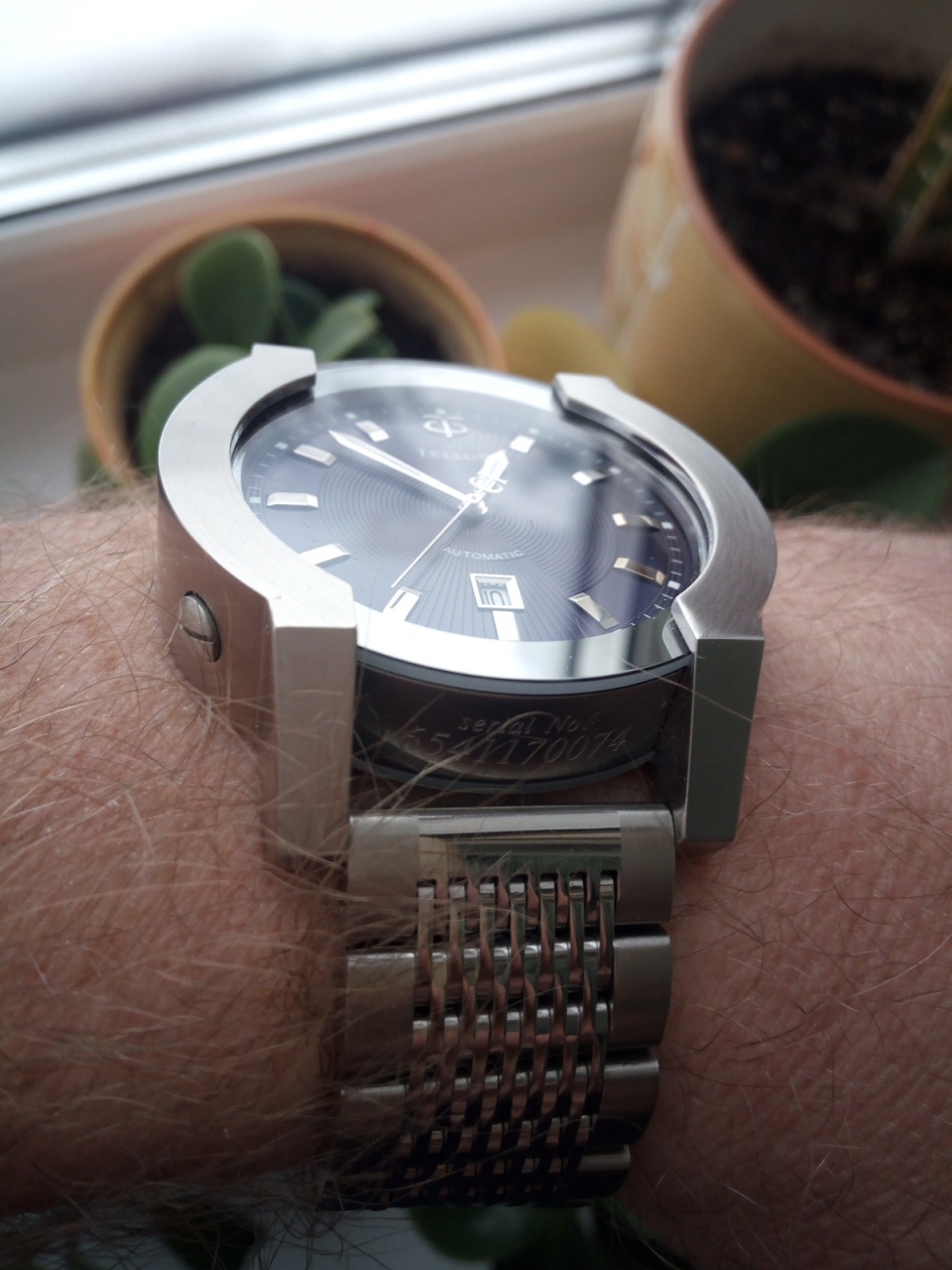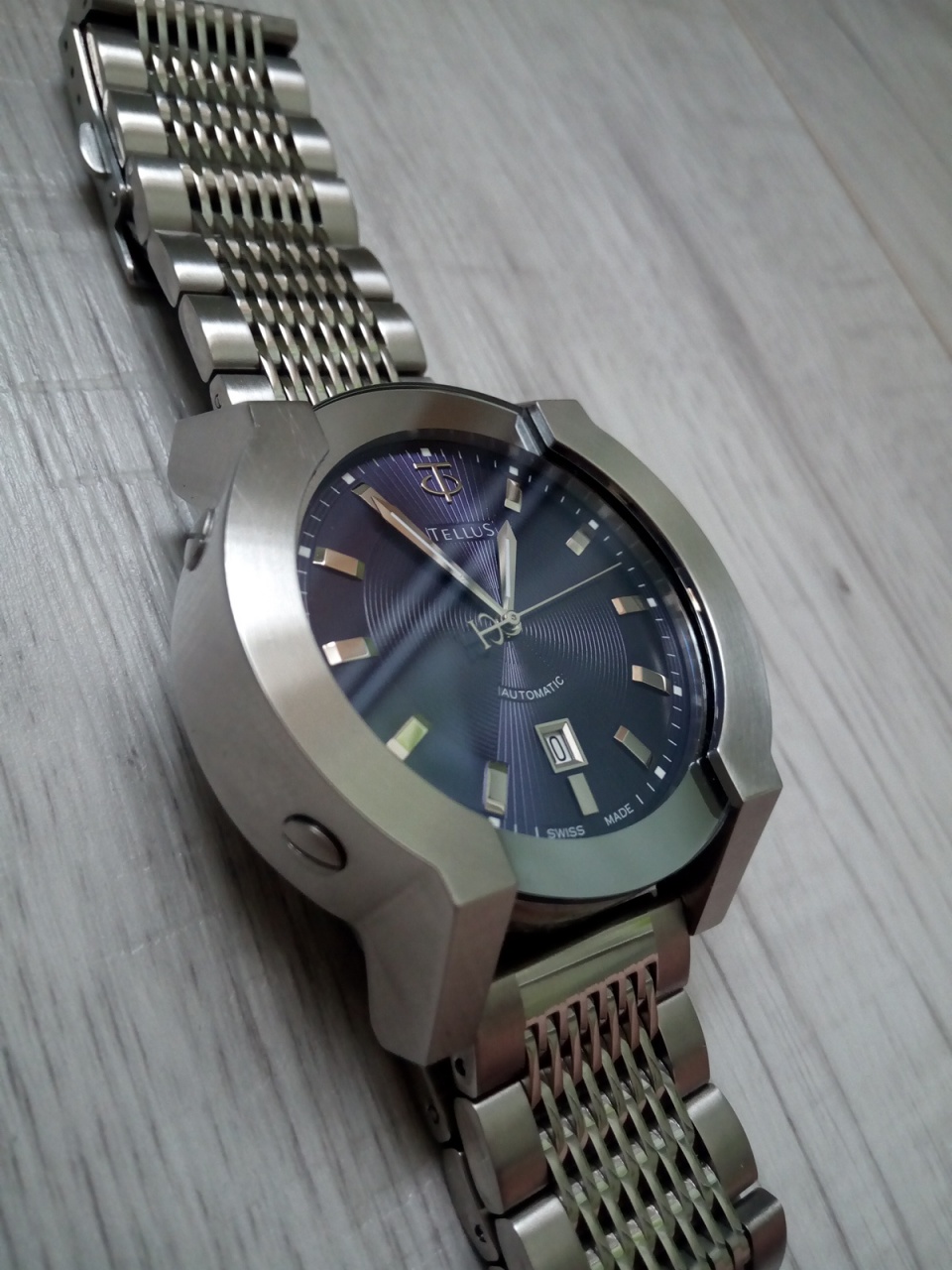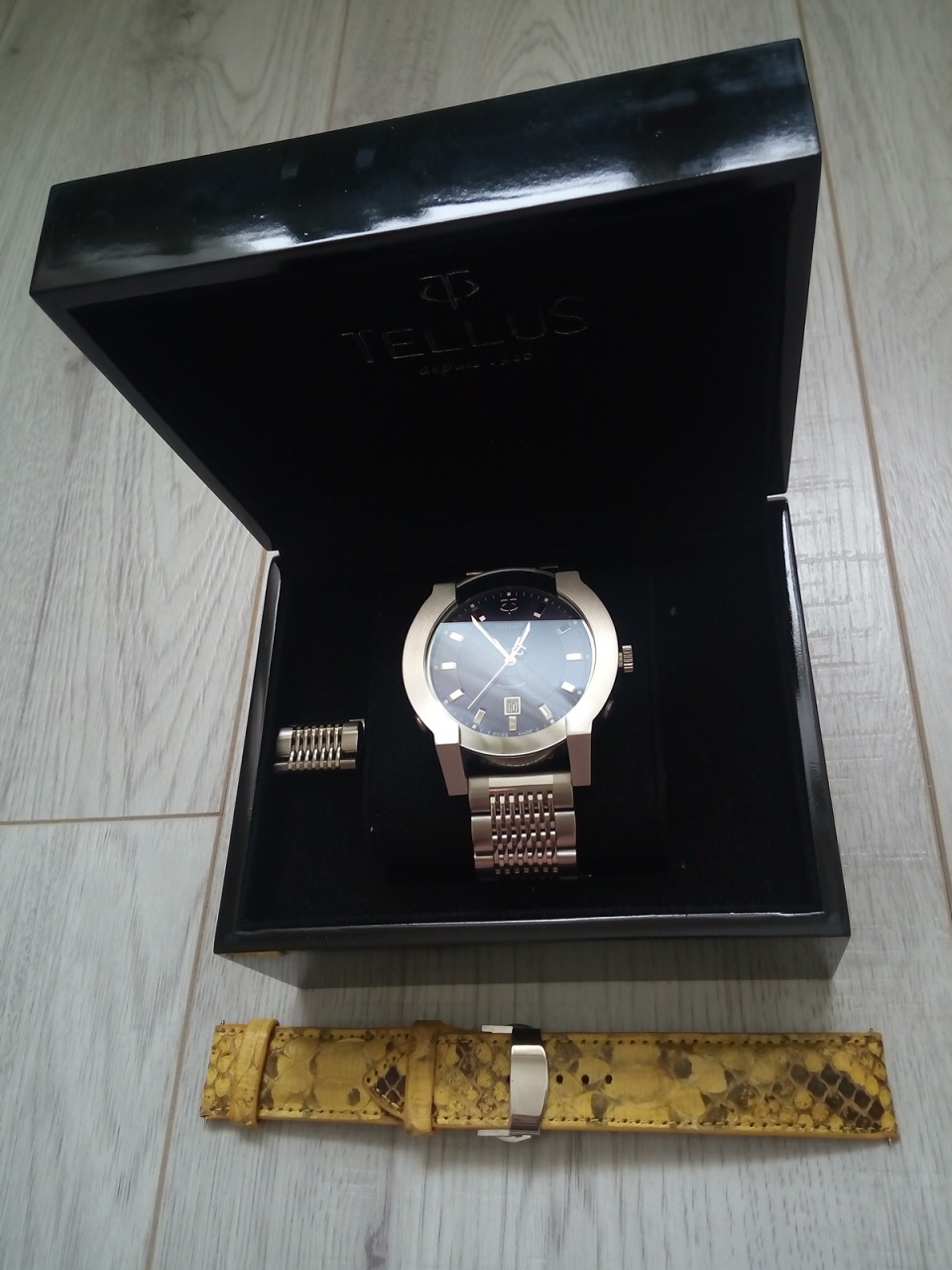 TELLUS Discoverer. Состояние отличное (состояние "B" в описании обусловлено правилами из-за смены браслета, по факту состояние ближе к "АА", часы носились редко и бережно), стекла чистые, по корпусу если только микроволоски. На фоне массы однотипных часов вы не останитесь незамеченным, проверено!