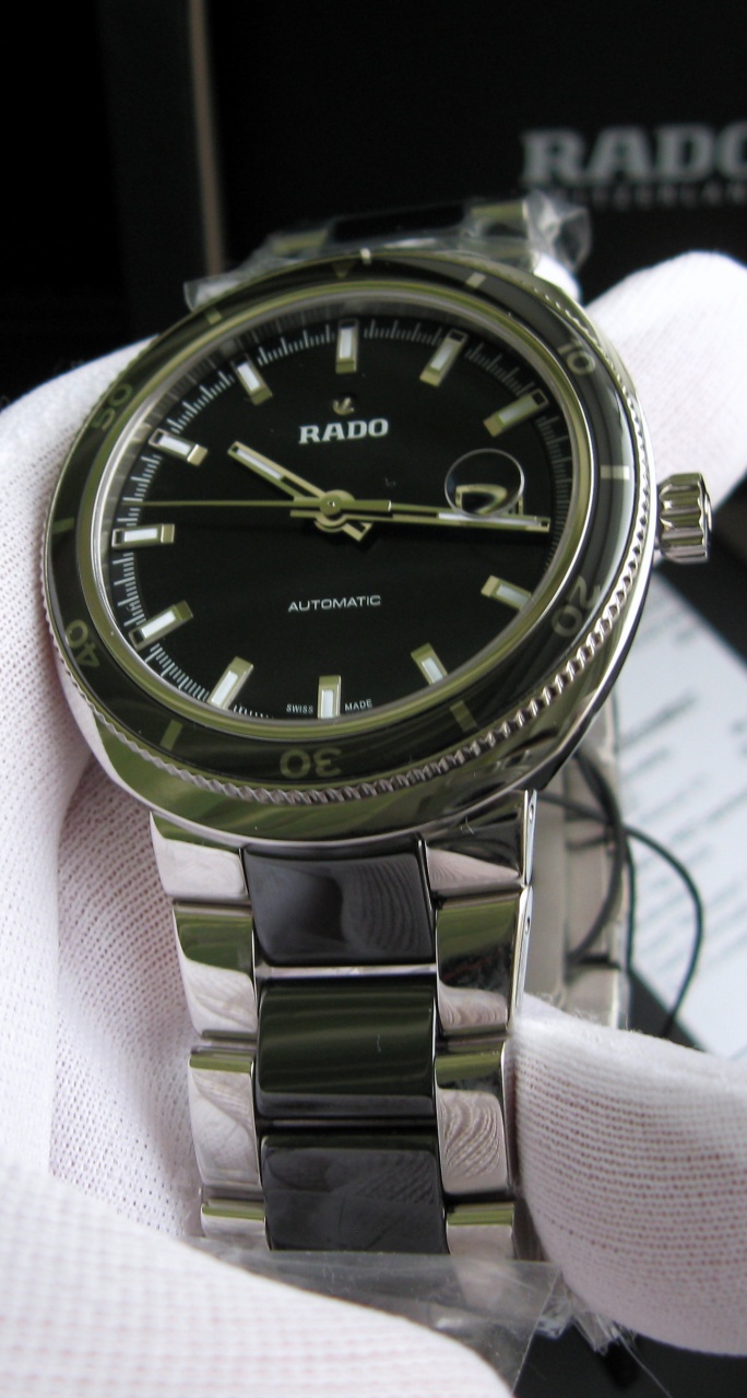 RADO R15959152 D-STAR 200 круглый стальной корпус с керамическим безелем , черным циферблатом, стальной браслет с керамическими вставками.