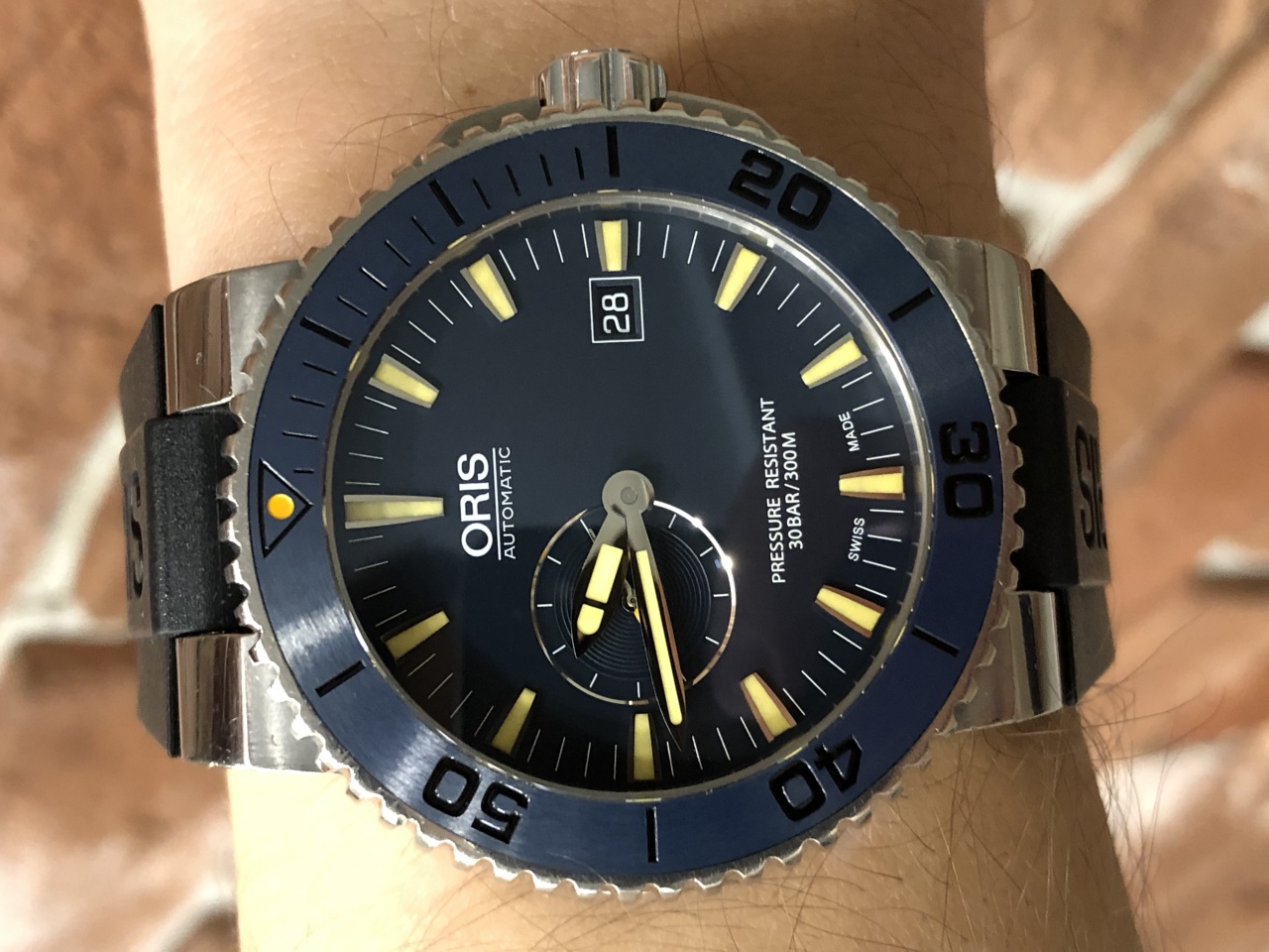 Oris Ограниченная серия 2000шт. Мои часы #260. Титан, резиновый каучуковый ремешок с быстрым изменением длины. Застежка тоже титан. 43 мм корпус- оптимальный размер. Секундная стрелка отдельным циферблатом. Механика с автоподзаводом. Все 100% оригинал, есть карточка с серийным номером, сертификат номерной. Легко пробить по номеру на сайте производителя. Все полностью исправно. Царапки видны на фото. Если хотите проверить- можем у крупных официалов. Новые стоили 2400 евро.