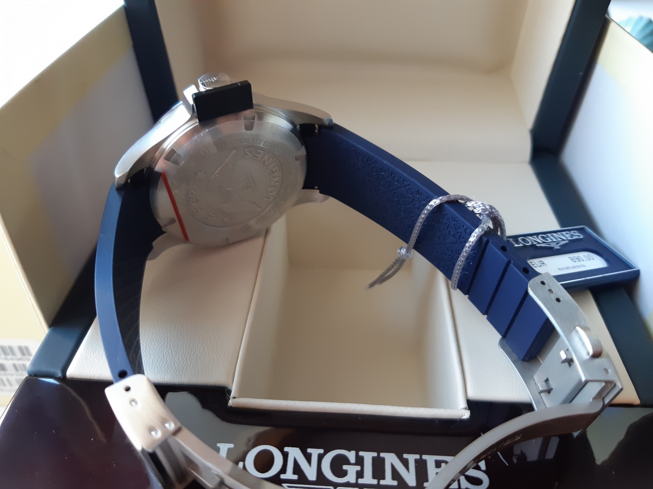 Оформление: В механизме использована технология V.H.P., разработанная ETA специально для Longines, которая обеспечивает повышенную точность хода часов, а также системы автокорректировки показаний после ударов (до 500 g) и воздействия магнитного поля. Антибликовое покрытие стекла, завинчивающаяся задняя крышка