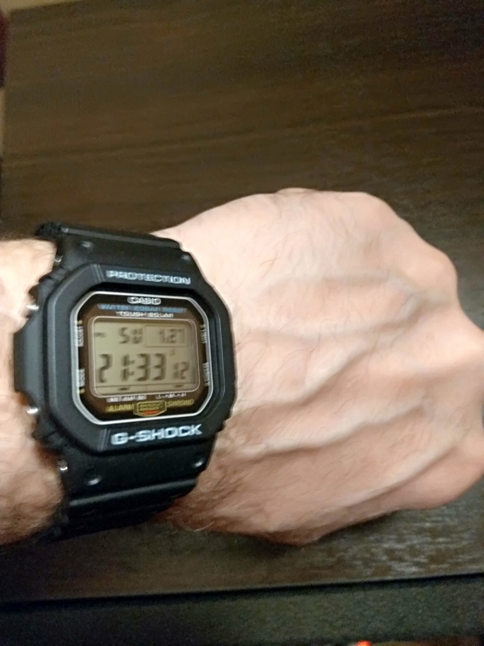 Металлический корпус ( который так же покрыт сверху пластиковым безелем ) . Сложно сказать плюс это или минус, но он тяжелей на 30гр и это ощутимо при сравнении лоб в лоб , а мне почему то в G-SHOCK помимо защиты нравится лёгкий вес . То что в GW-5000 крышка Screw Lock Back более практична и долговечна не спорю , НО эл.питания в часах с функцией touch solar придётся менять раз в 7-10 лет , а проживут ли у меня G-SHOCK столько времени - это вопрос . И потом в конце концов, за те же деньги что стоят GW-5000 можно купить 3шт G-5600E и можно забыть о том что крышку нужно когда нибудь откручивать .