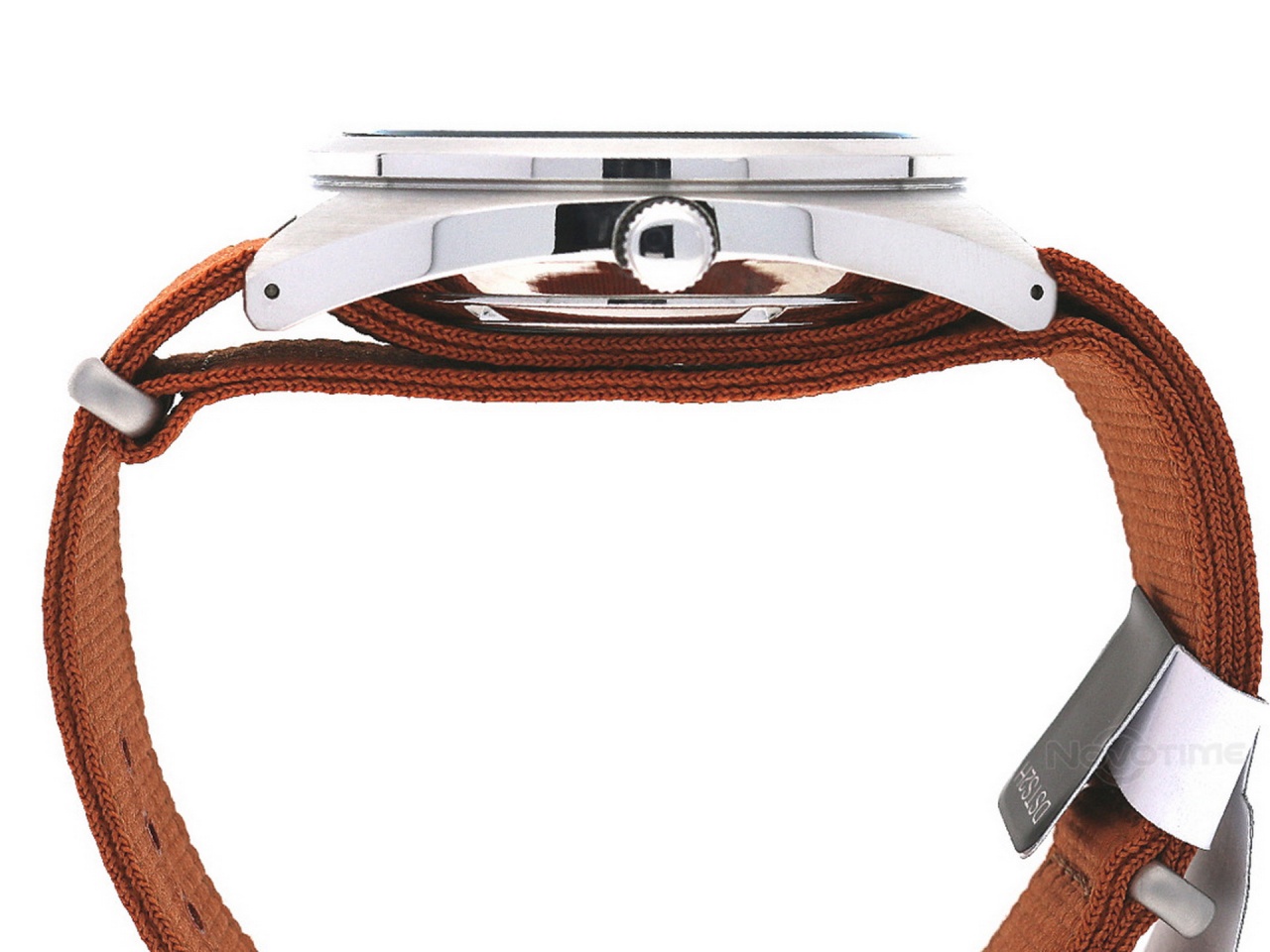 Изначально часы шли с натовским ремешком кирпичного цвета