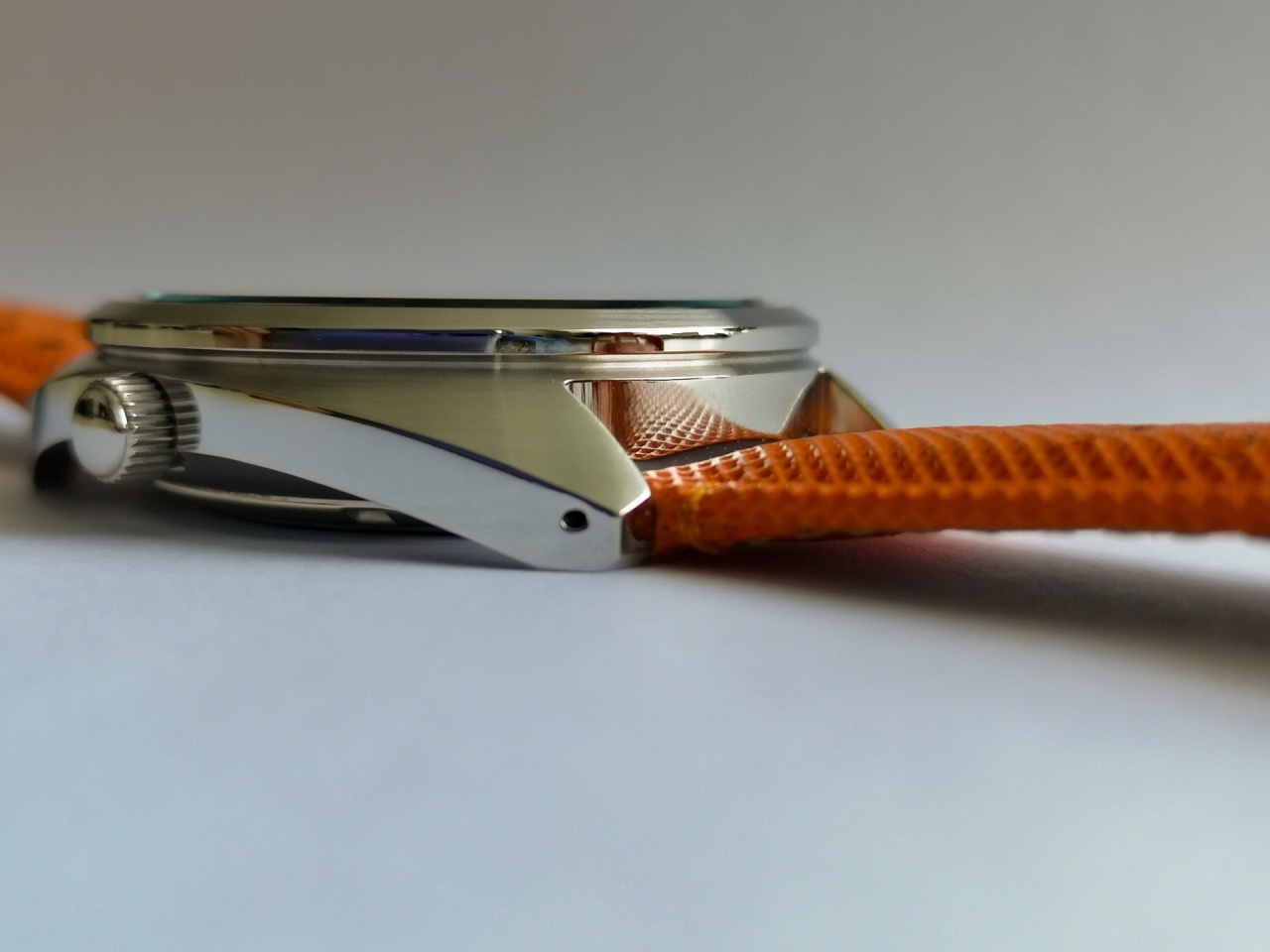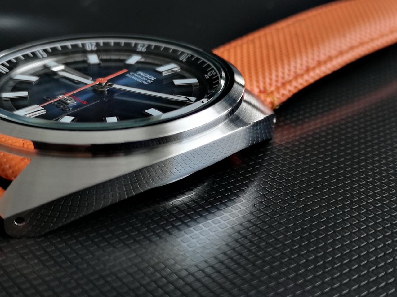 Поначалу были идеи пошить что-то из кожи такого же цвета, но совсем случайно я наткнулся на ремешок ярко оранжевого цвета, который был точно таким же, как и секундная стрелка !!!