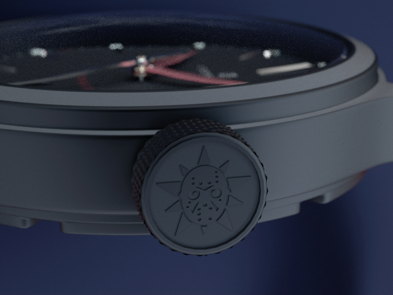 Рифлённая заводная головка с гравировкой лепромаски.
