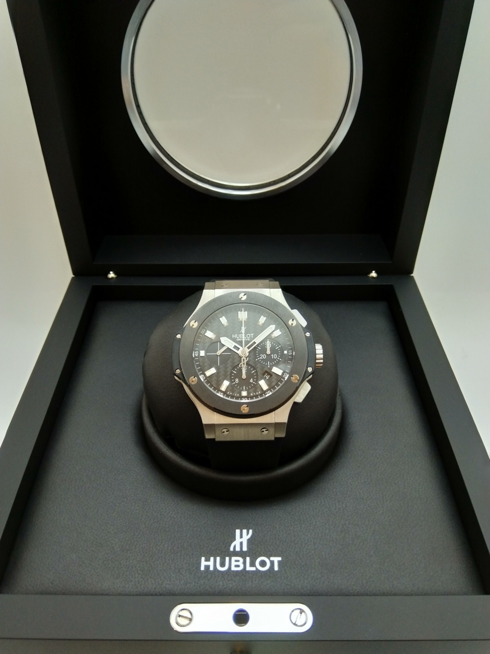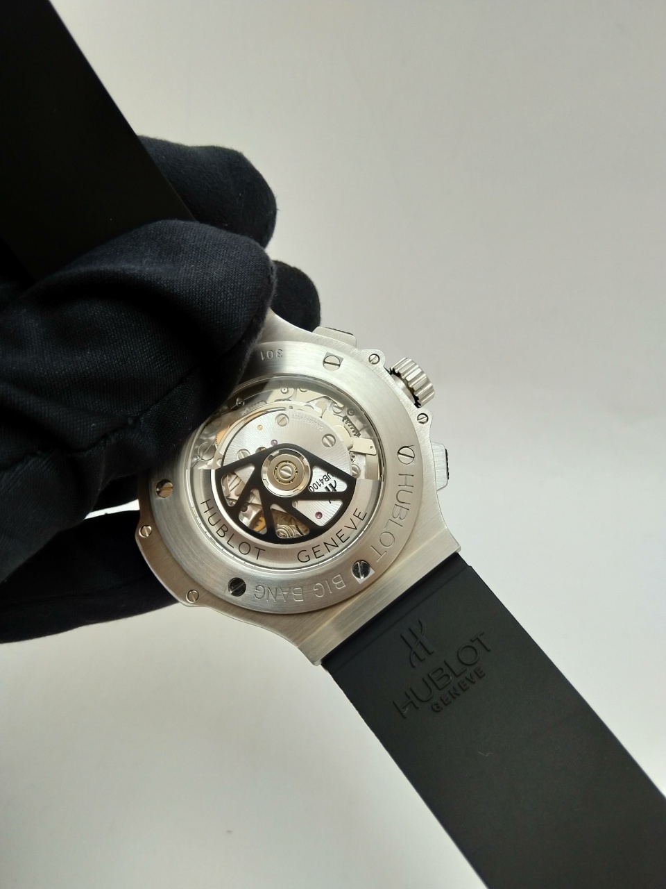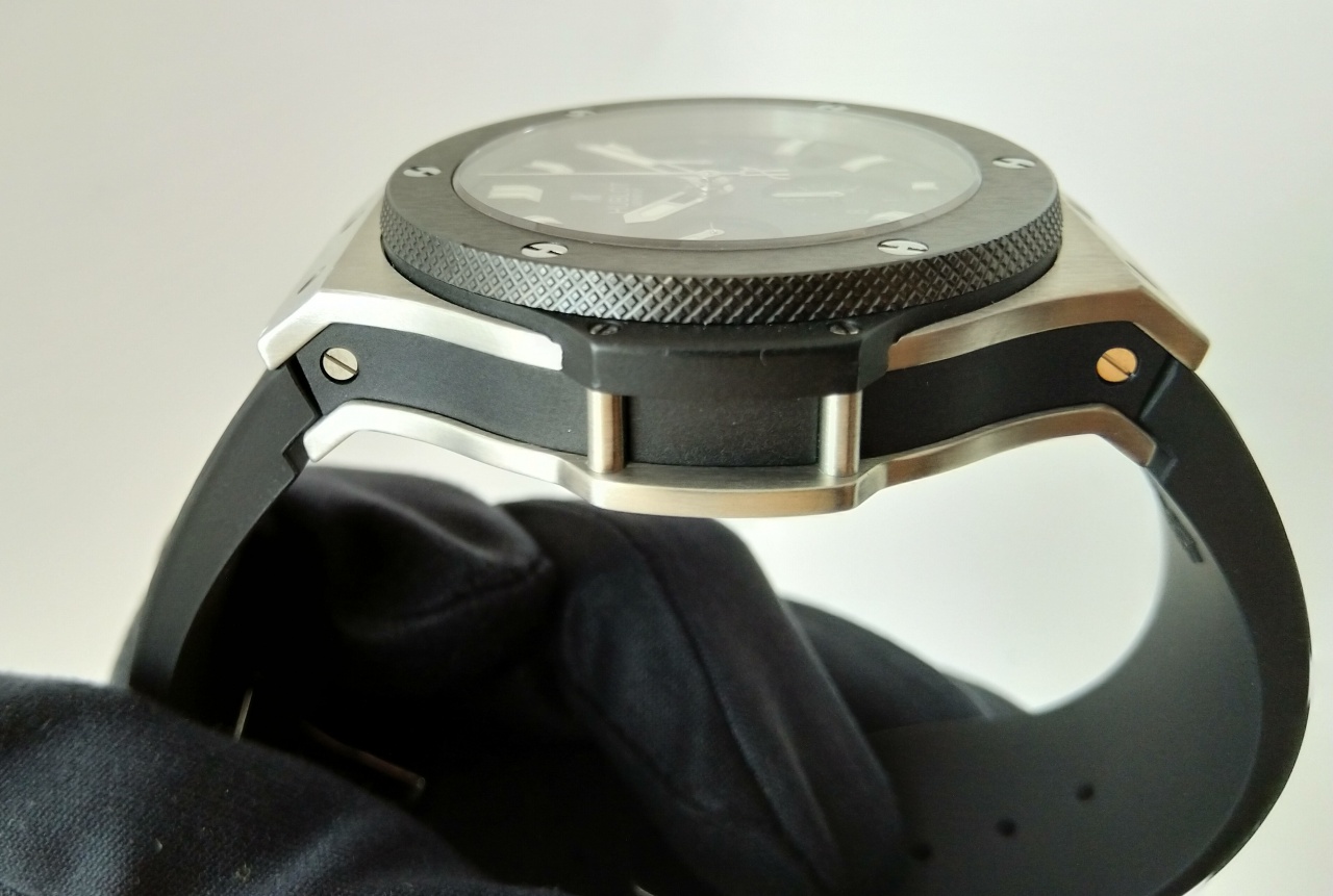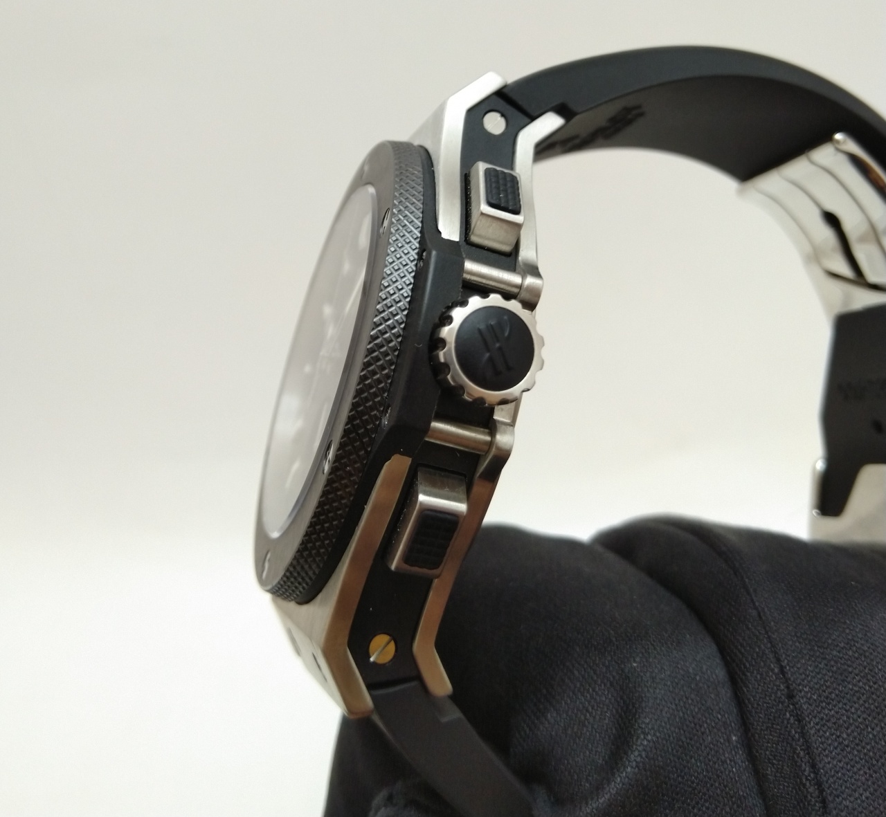 Механизм: HUB4100 с механическим автоподзаводом, с функцией хронографа и датой. Запас хода 42 часа.