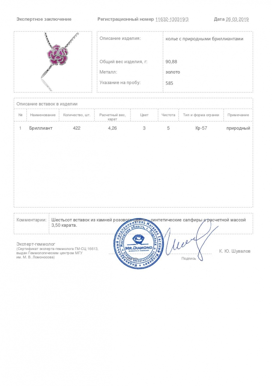 Золотое колье с розовыми сапфирами и бриллиантами 4.26ct