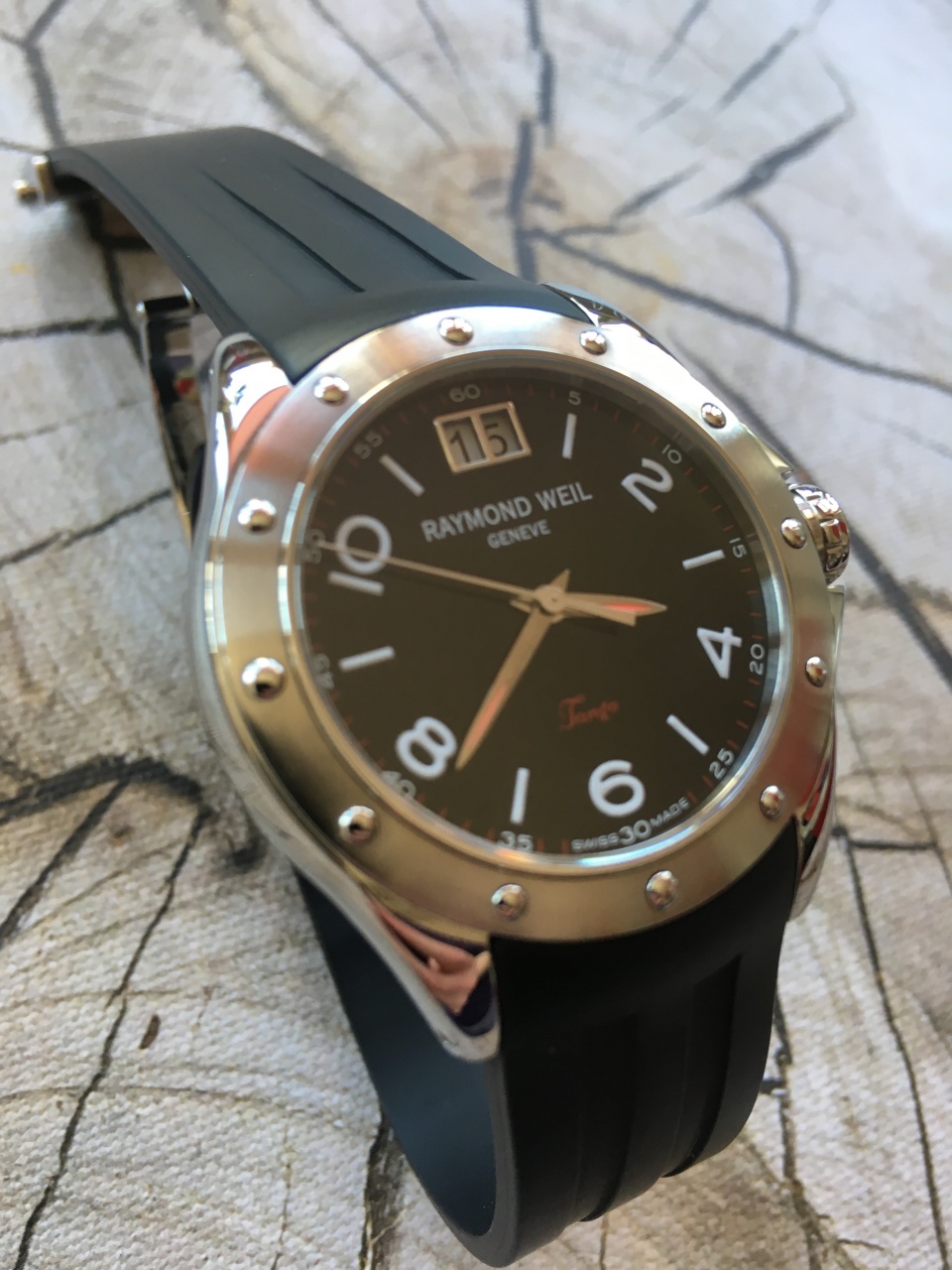 В наличии интересные и редкие часы Raymond Weil Tango 5595/1-SR-05207 в прекрасном состоянии! Одевали несколько раз. Коробка и документы не сохранились. Установлен новый элемент питания (15.04.19г.) Как говориться одел и пошел, никаких вложений не требуется!