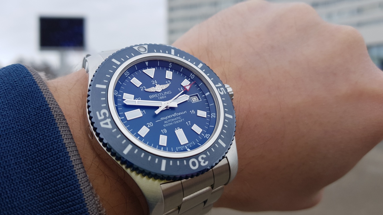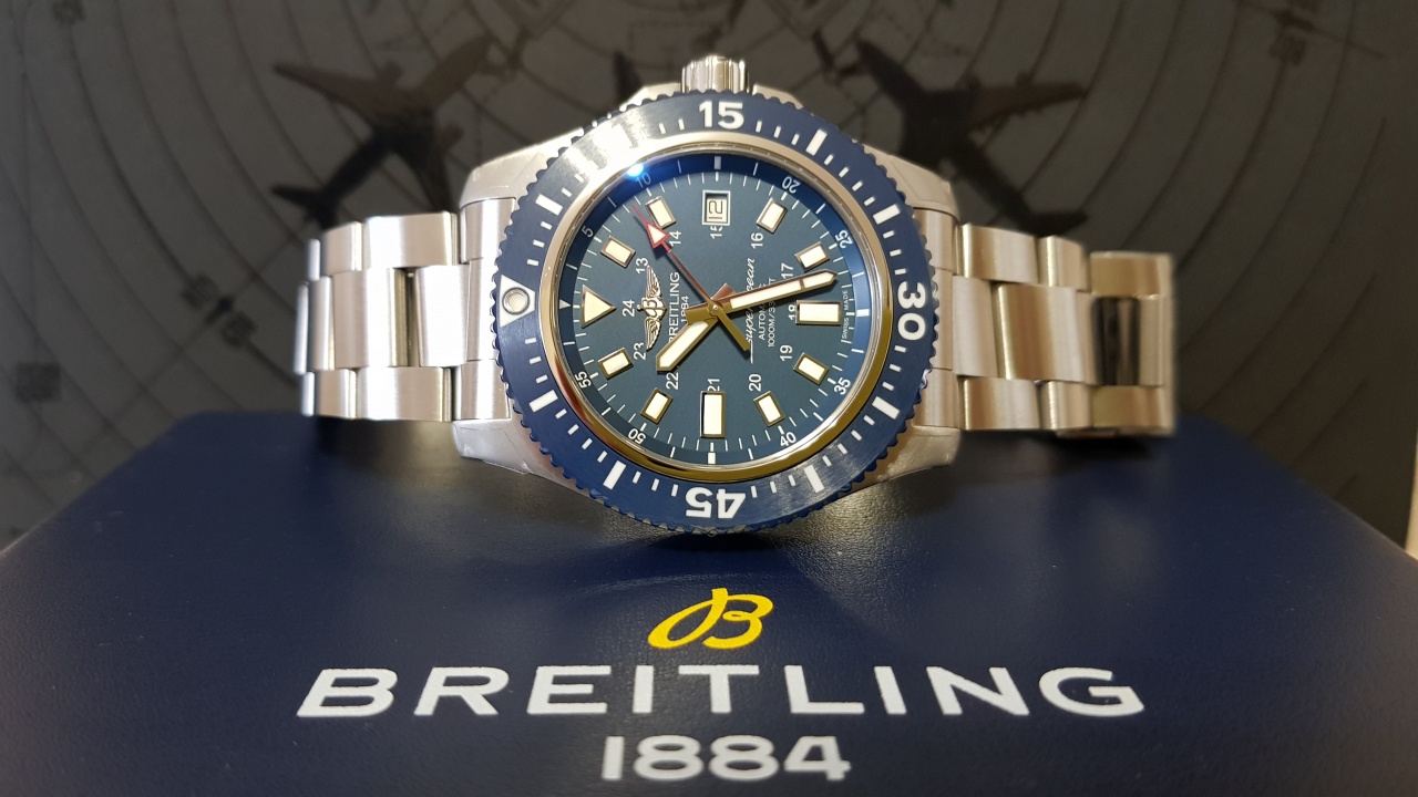 На днях приобрел данного красавца! Долго выбирал между данной моделью и Breitling Avenger Blackbird 44, выбор был сделан в пользу Breitling Superocean 44 Special с синеи лицом.Часами очень доволен.В живую данная модель часов смотрится изумительно