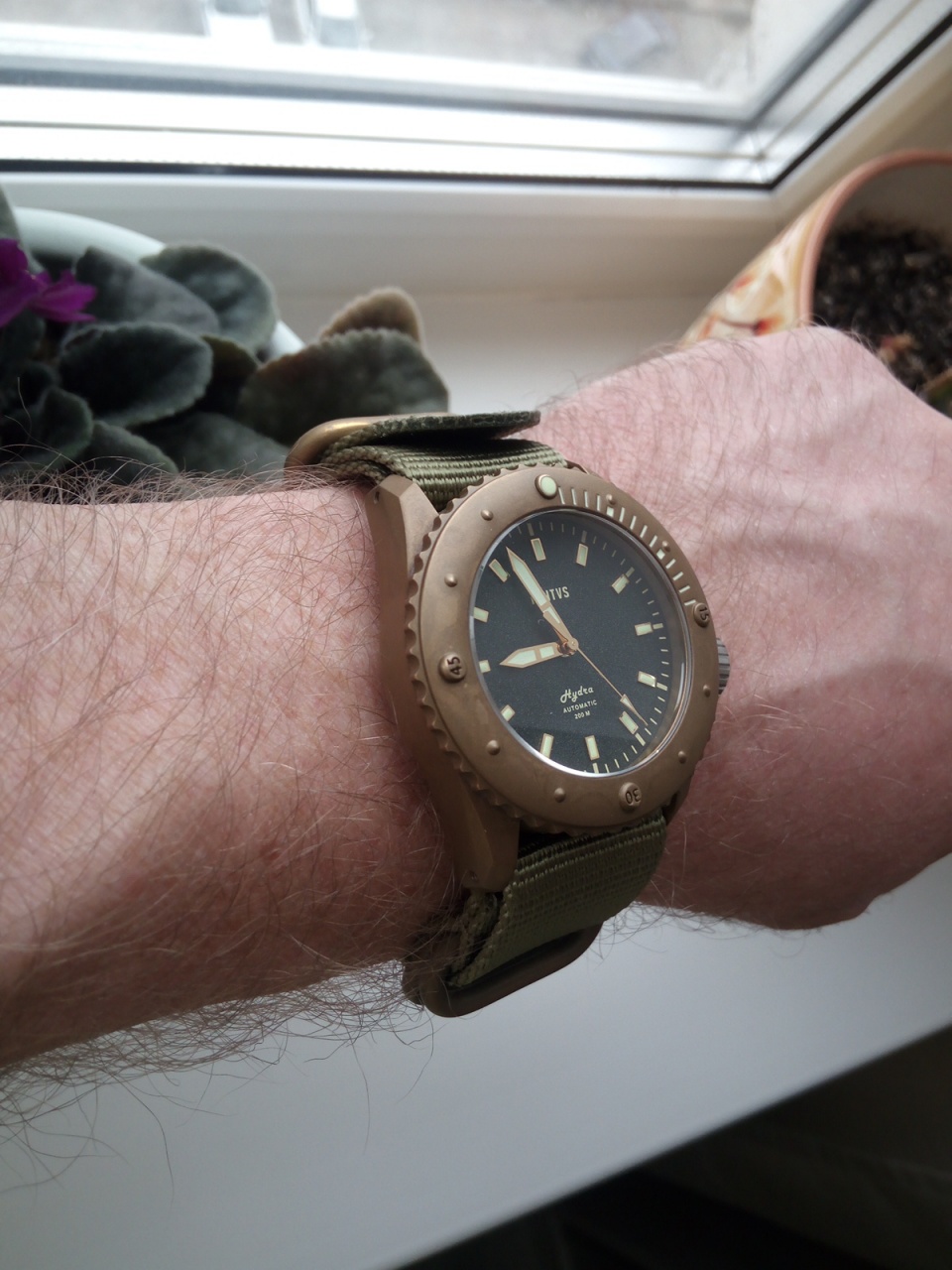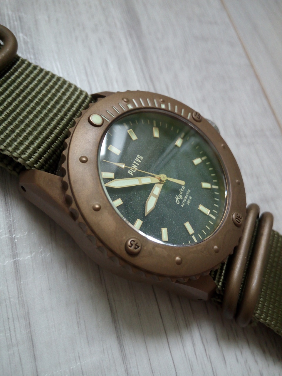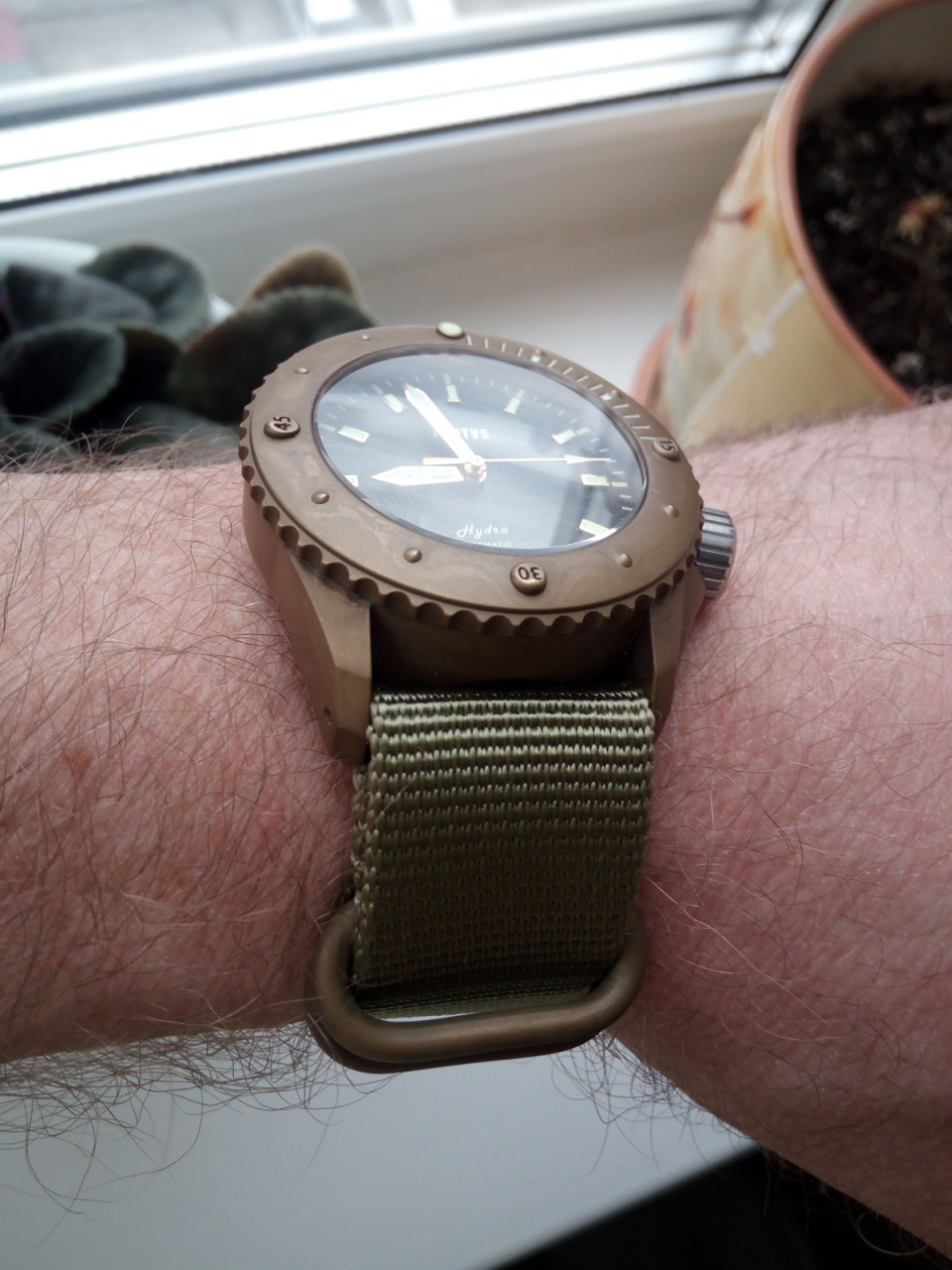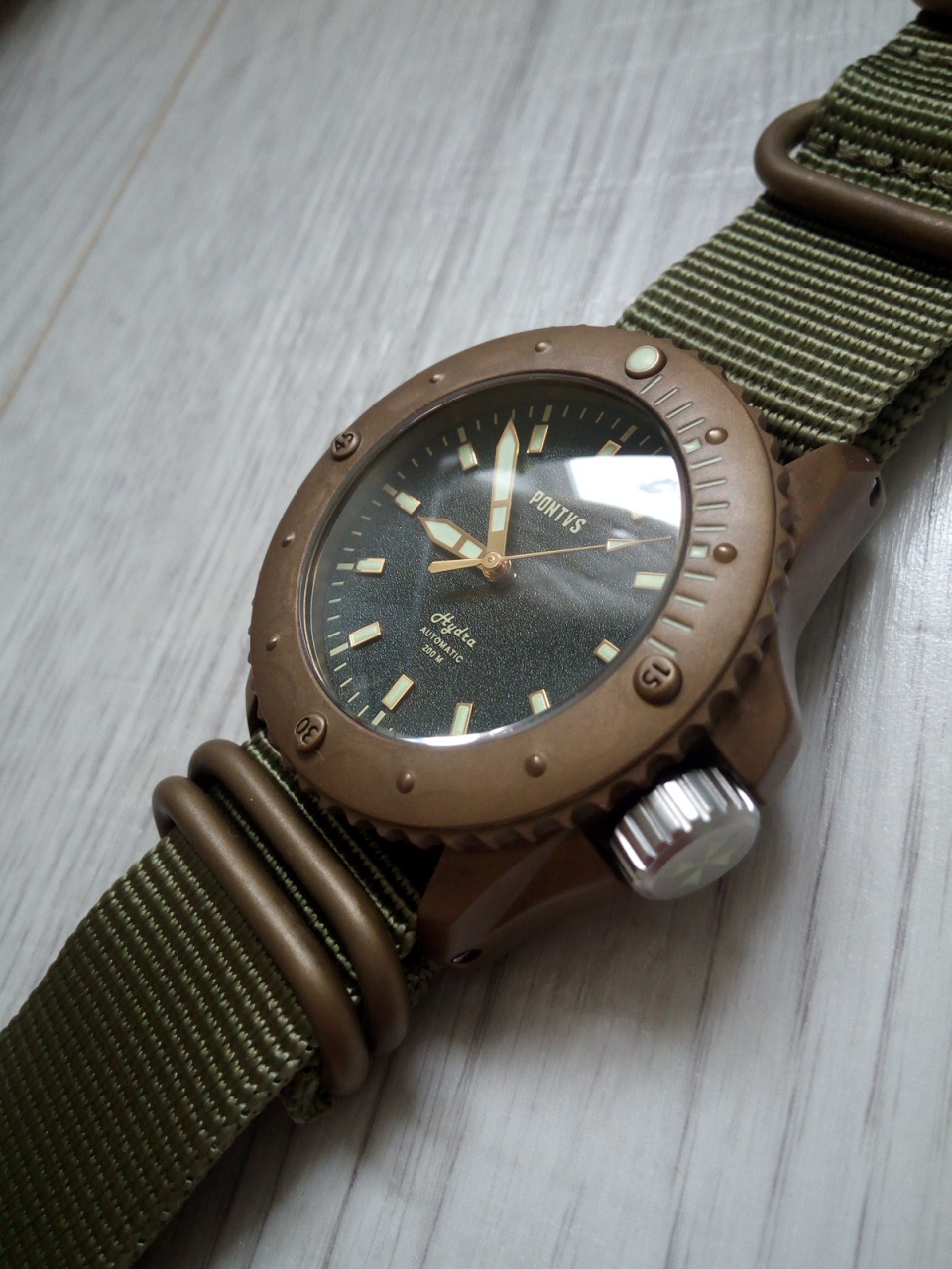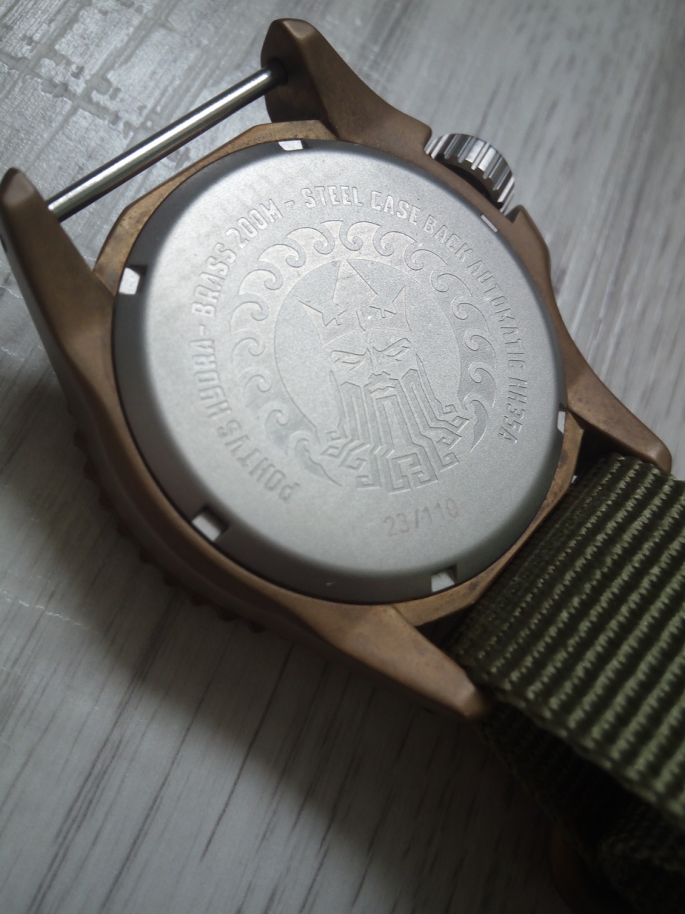 -Материал корпуса и безеля: Naval grade blasted Brass (