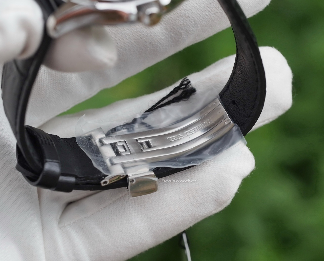 Красивый синий циферблат, полированные стрелки и черный кожаный ремень с клипсой