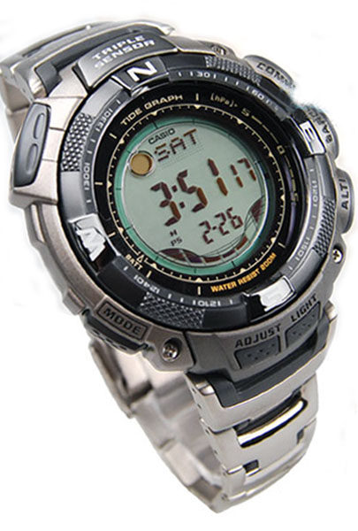 Полностью автоматическая электролюминесцентная подсветка с автоматической активацией при тусклом, неясном свете и выключением подсветки при достаточном освещении. Встроенный цифровой компас. Альтиметр: встроенный датчик барометрического давления с возможностью вывода результатов в единицах высоты над уровнем моря. Максимальная высота - 10000 метров над уровнем моря. Барометр: встроенный датчик давления для измерения барометрического давления. Встроенный датчик температуры. Подзарядка аккумулятора от энергии солнечного света. Отображение возраста и фазы луны на основе введенных значений широты и долготы. Графическое отображение сведений о приливах и отливах, основанных на широте и долготе в точке местонахождения. 12-ти и 24-х часовой формат времени. Таймер обратного отсчета. Индикатор уровня зарядки элемента питания. Модуль часов рассчитан на работу при низких температурах. Поворотный лимб с высеченными направлениями сторон света.