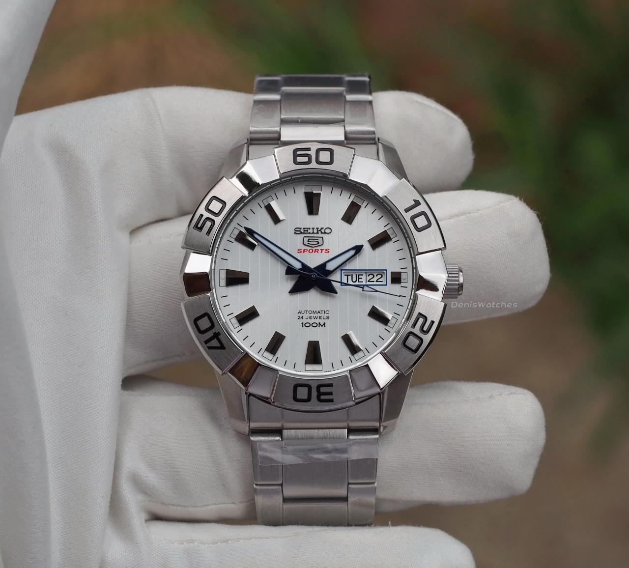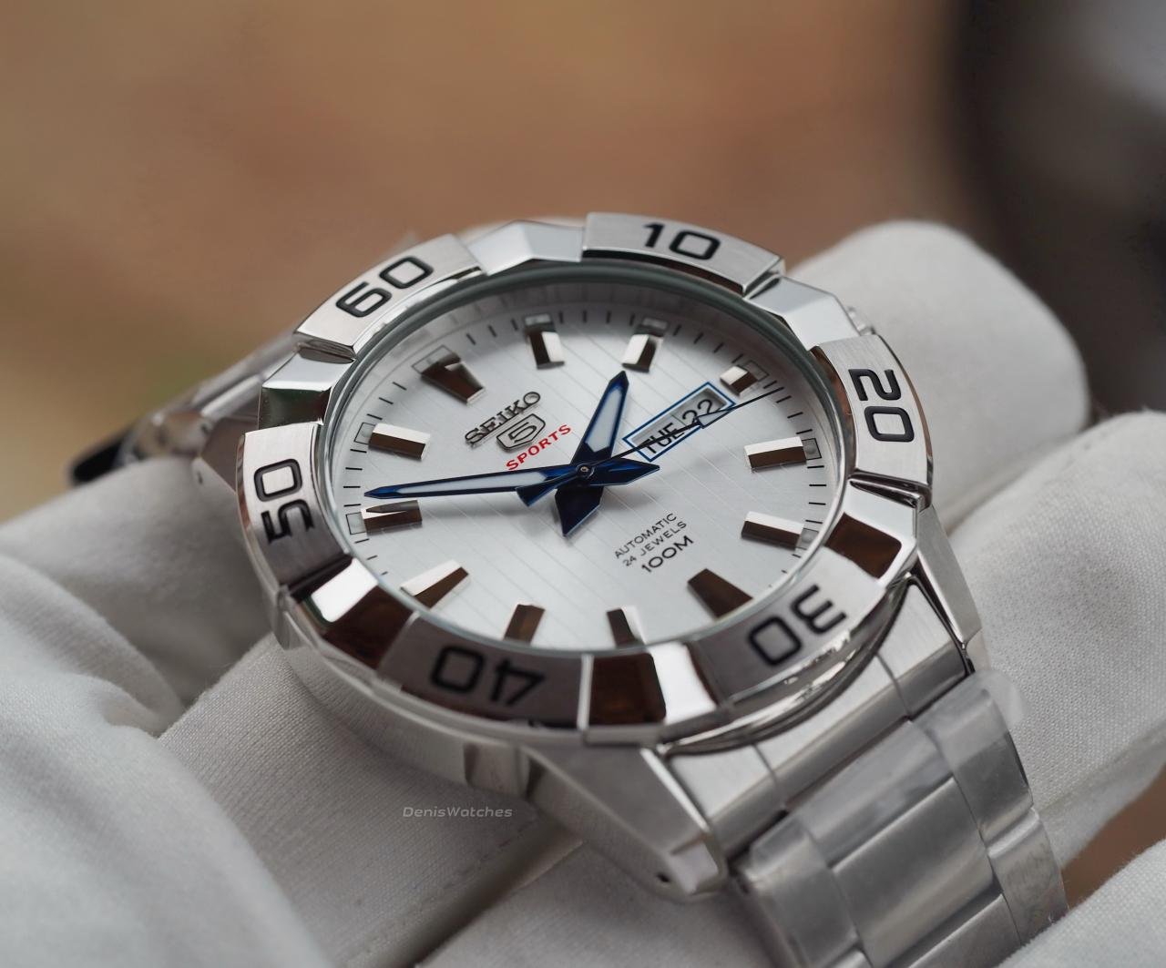 Новая спортивная модель из серии Seiko 5 Sports в красивом светлом исполнении с синими стрелками!
