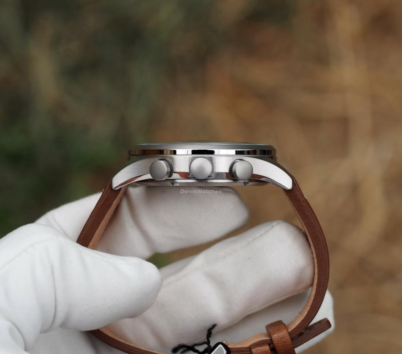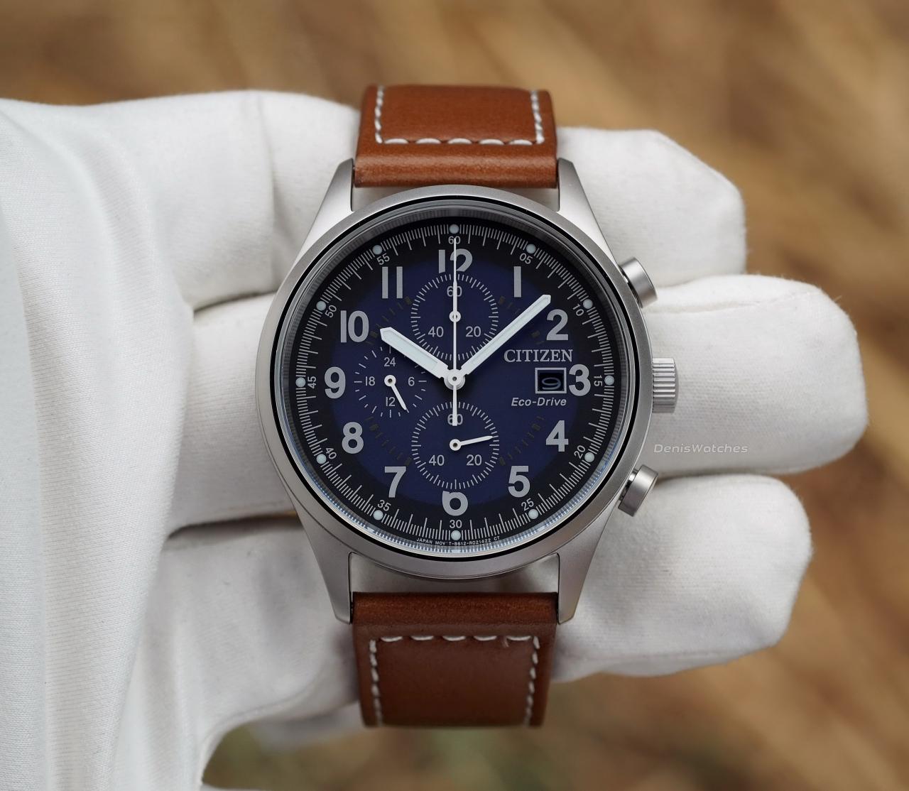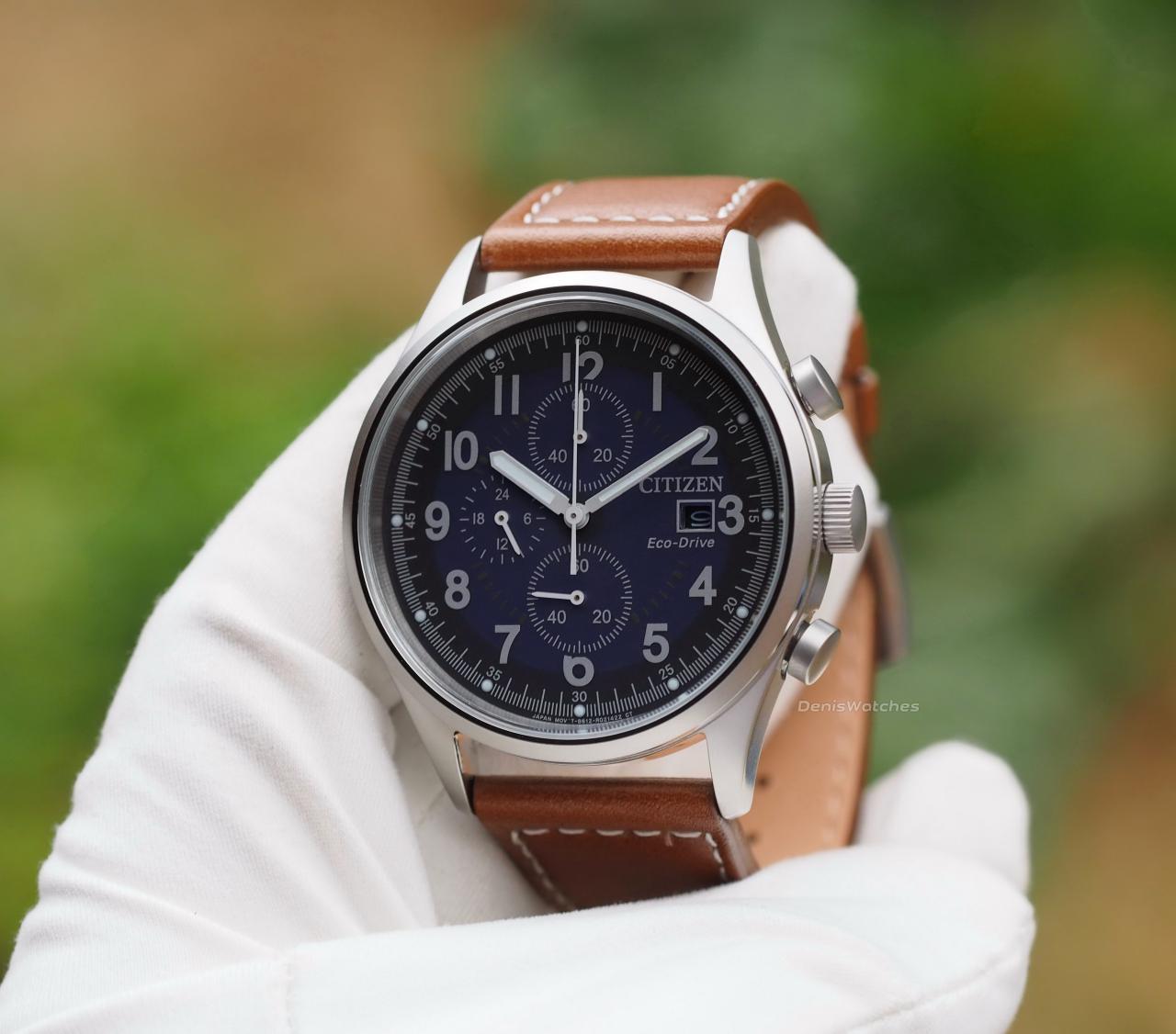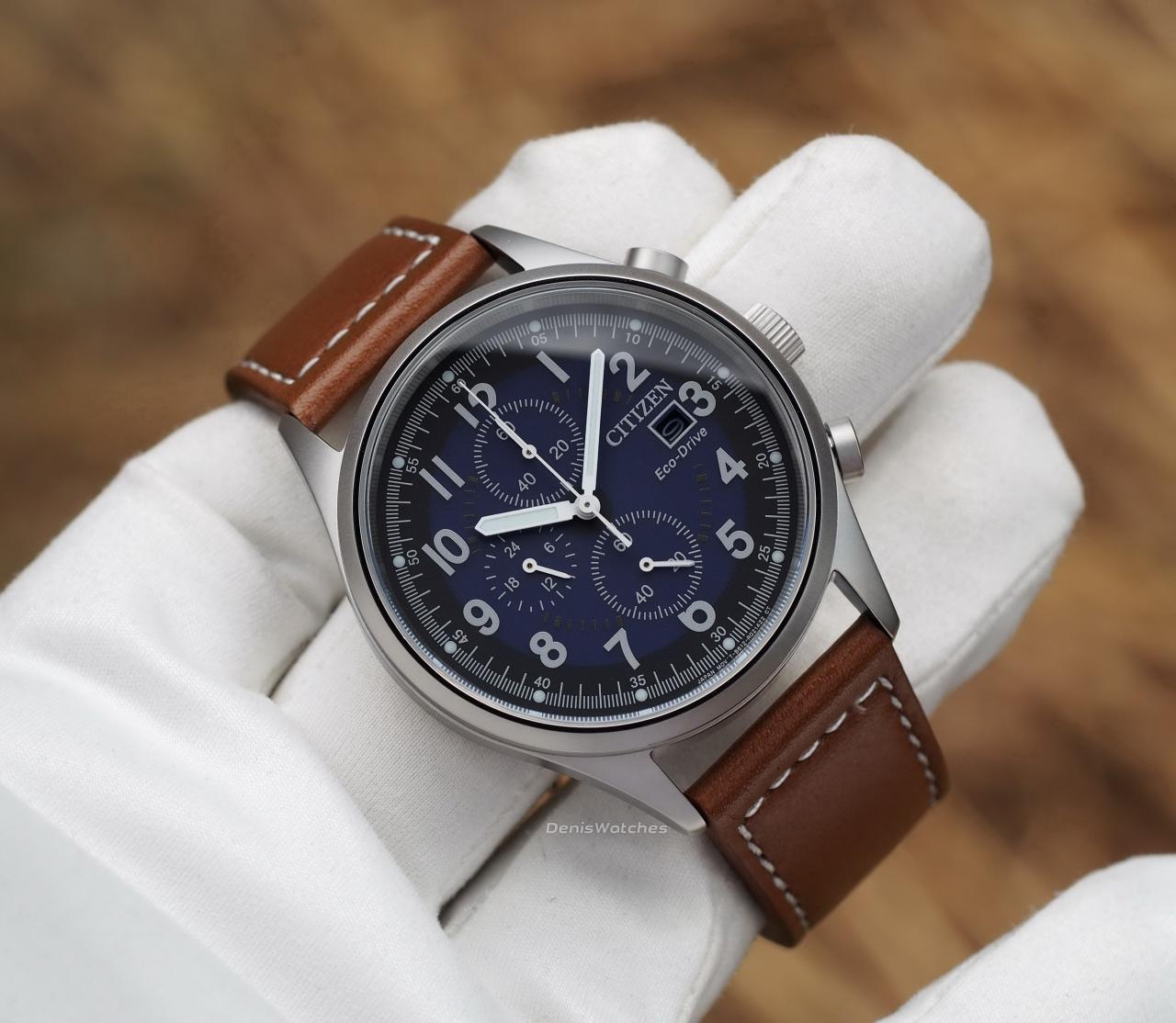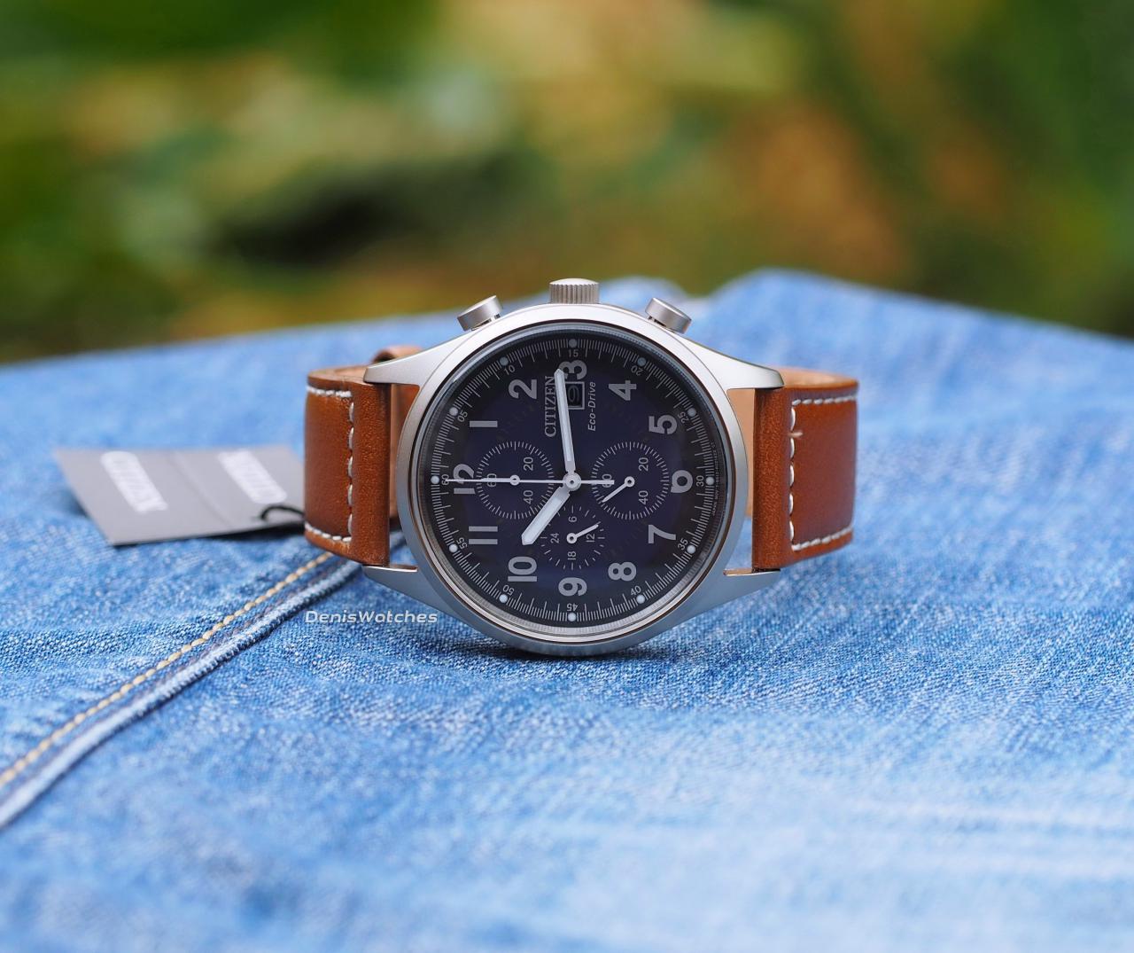 Стильный хронограф с синим циферблатом на красивом коричневом ремне с контрастной строчкой!