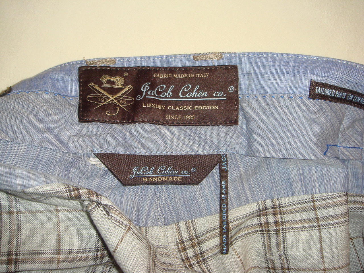 Продаются новые мужские летние шерстяные брюки джинсового кроя ручной работы итальянского бренда JACOB COHEN, превосходного исполнения, цвет светло-серый в коричневую клетку, логотип, TYPE 688 , клаcическая посадка на талии (regular fit), застёгивается на пуговицы из буйволиного рога и основную фирменную посеребренную пуговицу с логотипом бренда, фирменный ярлык из кожи пони бежевого цвета с вышитым логотипом марки Jасоb Соhёn, к брюкам прилагается платок, состав: 70% высококачественная шерсть( фабрика Loro Piana) , 15% шелк, 15 % лен, все бирки прилагаются , гарантированный 100% оригинал, размер 42 , производство Италия