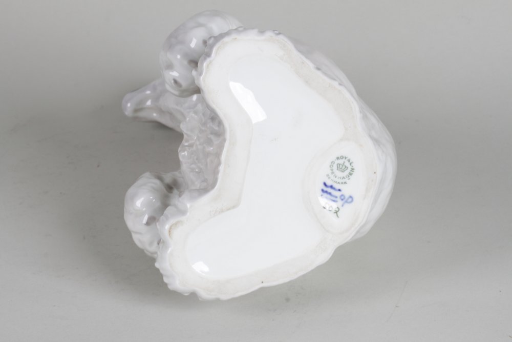 Клейма: авторское факсимиле, марка мануфактуры хромом в виде короны с надписью «ROYAL COPENHAGEN DENMARK», марка кобальтом волны; номер модели по каталогу хромом 502; марка художника росписи статуэтки кобальтом «OP».