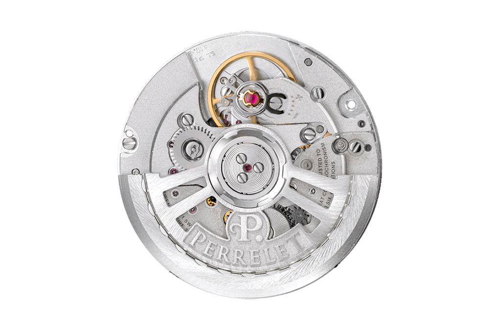 Модель оснащена автоматическим калибром Perrelet P-401 с балансовой частотой 28800 полуколебаний в час (4 гц), запасом хода 42 часа, функциями индикации часов, минут, секунд (посредством соответствующих центральных стрелок), даты (посредством соответствующего цифрового указателя в прямоугольной апертуре, расположенной на 3 часах) и времени второго часового пеояса (посредством специальной центральной GMT-стрелки с красным треугольником на ее наконечнике). Все функции, включая индикацию второго часового пояса, регулируются с помощью заводной головки.