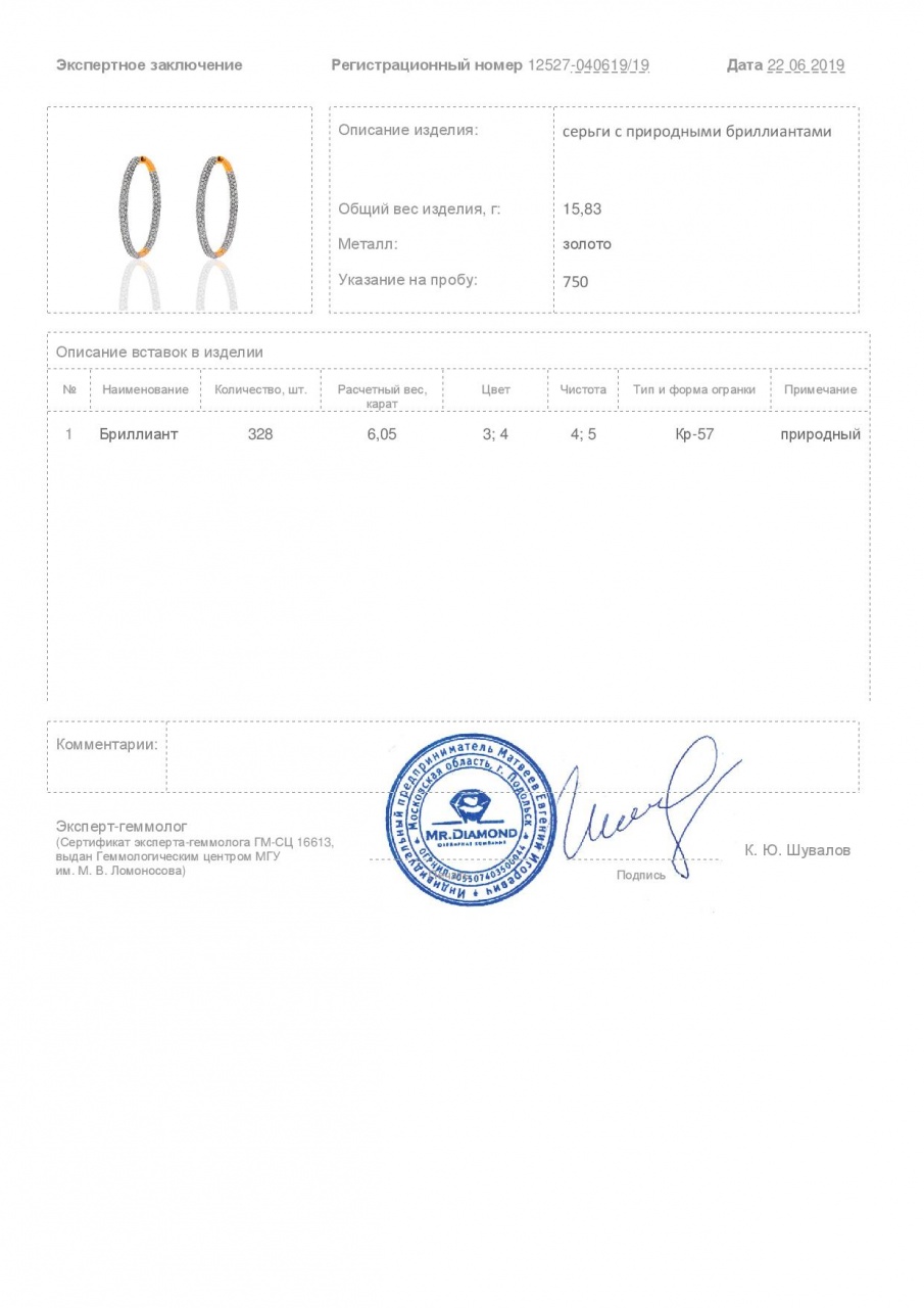 Удивительные золотые серьги с бриллиантами 6.05ct Damas