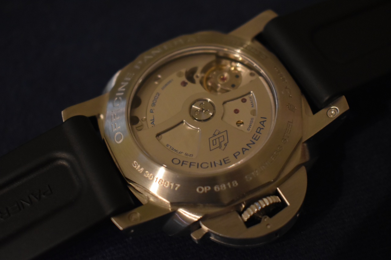 Механика с автоподзаводом, калибр Panerai P.9002, противоударное устройство Incabloc®,