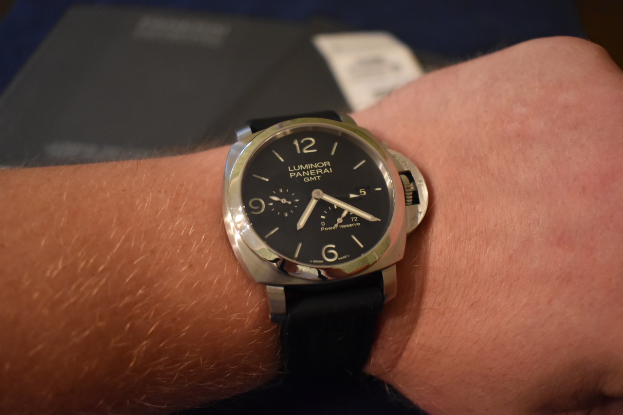В ней реализовано всё, что ценят "Панеристы" - циферблат сэндвич, GMT, запас хода, дата,