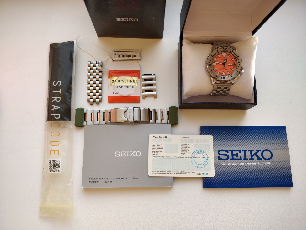 Продам Seiko Orange Monster. Сборка Япония. На часы установлено сапфировое стекло, взамен родного минерального. А так же полностью литой браслет Super Engineer от Strapcode. Родное стекло и браслет идут в комплекте. Часы были аккуратно ношены, состояние на 4+. Дополнительные фото и видео по запросу.