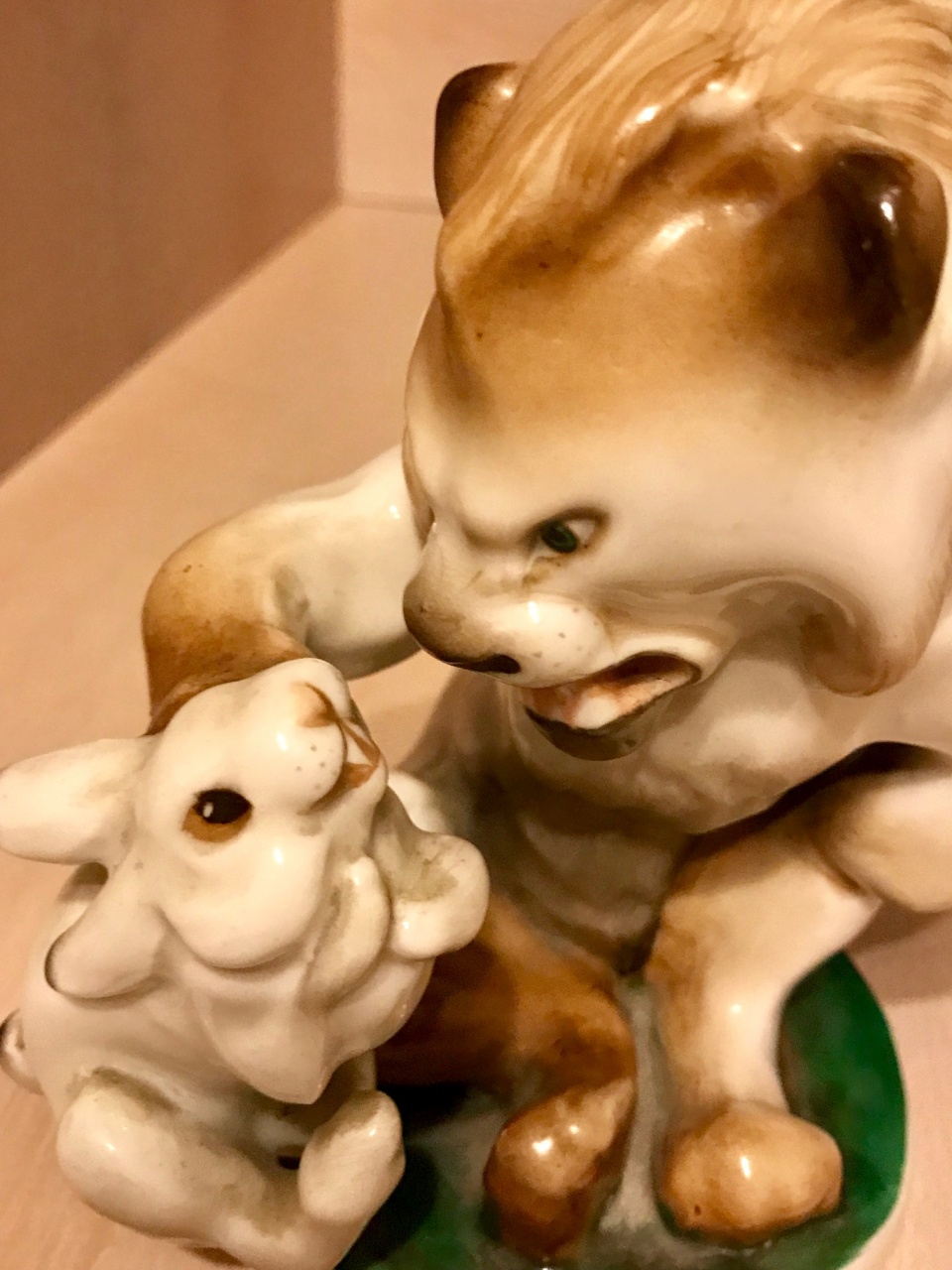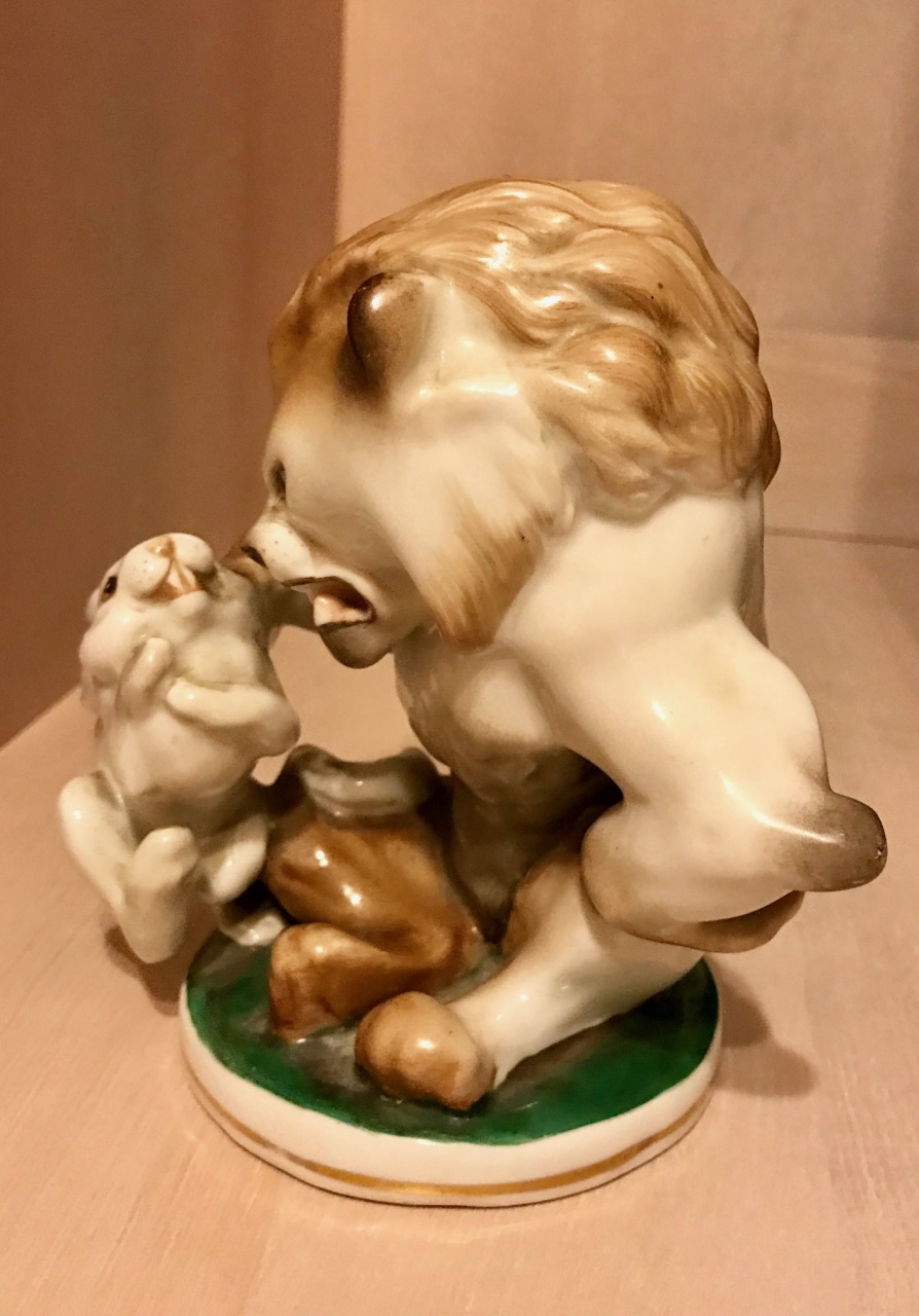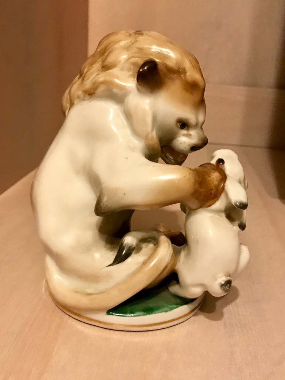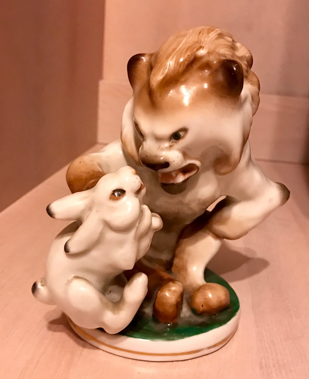 Статуэтка "Лев и заяц" СССР, 1950-е гг. Фарфор