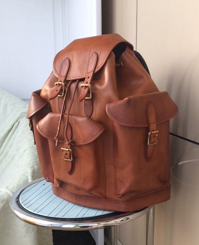 Абсолютно новый, в упаковке , цвет Camel , вес 1600g , размеры высота 45 см, ширина 47 см, дно 20 см, натуральная кожа( растительного дубления с очень красивым рисунком. Гладкая, толстая, довольно жесткая первое время на ощупь. Как и джинсы RAW требует некоторого времени, чтобы бриллиант засверкал во всей красе. Главная особенность материала в том ,что он будет очень красиво стареть, не терять форму(становясь со временем мягче) и спустя десятилетия будет выглядеть благородно. При должном уходе такое изделие прослужит всю жизнь и еще правнукам достанется. Ручная и штучная работа, сделан в Японии. Цвет коричнево-рыжий, ближе к цвету богатства и удачи по фен-шую. Практически квадратный - если не затянута горловина. Дно полукруглое. Карманы" рабочие", объемные, не плоские, проклепаны по углам медными заклепками. Внутренняя сторона лямок тактильно мягкая( используется волос крупного рогатого скота), очень приятно к плечам, спине и т.д В него войдет ноутбук, но там нет поддержки - просто одно отделение. Нормально войдут кроссовки, свитер-ветровка, кошельки и т.д. Будет при этом не туго набит. Внутренняя подкладка из износоустойчивого хлопка Оксфорд