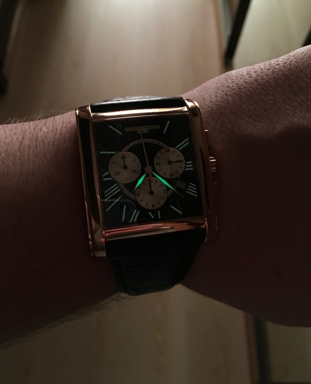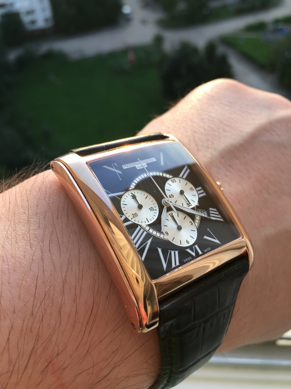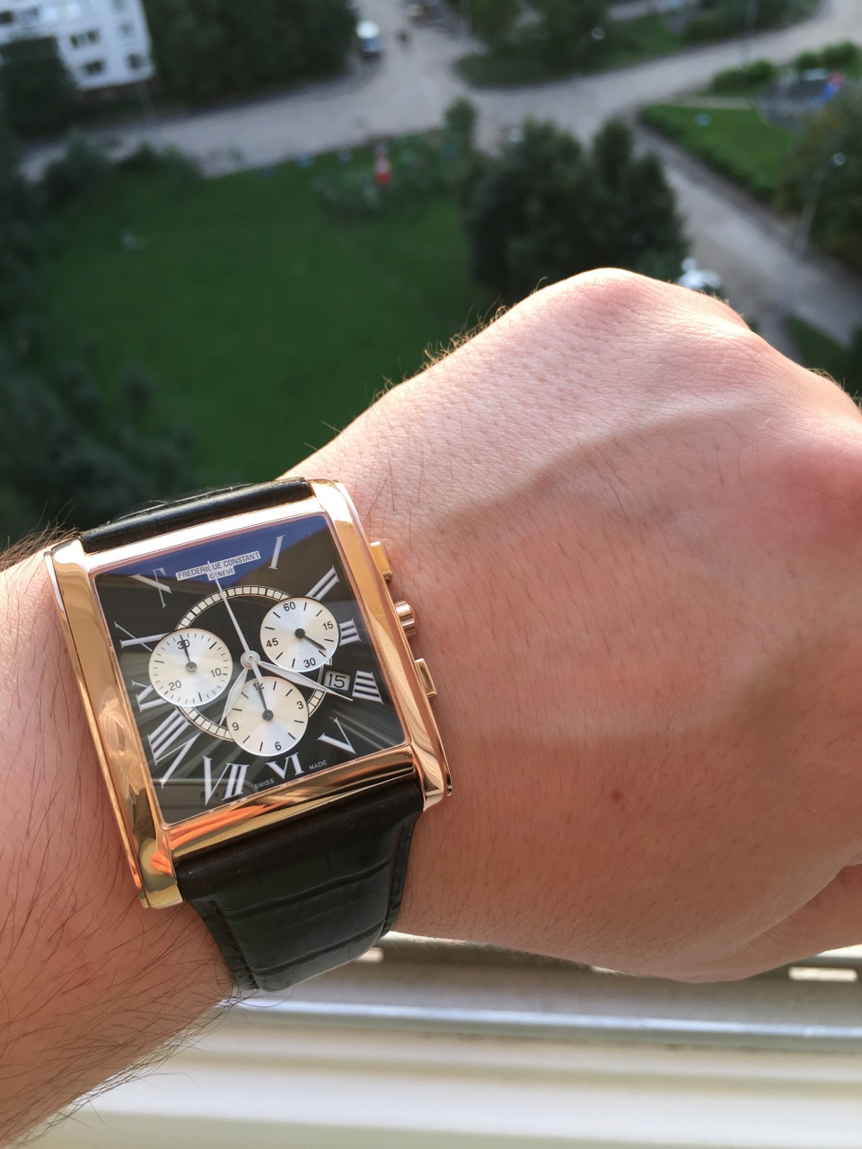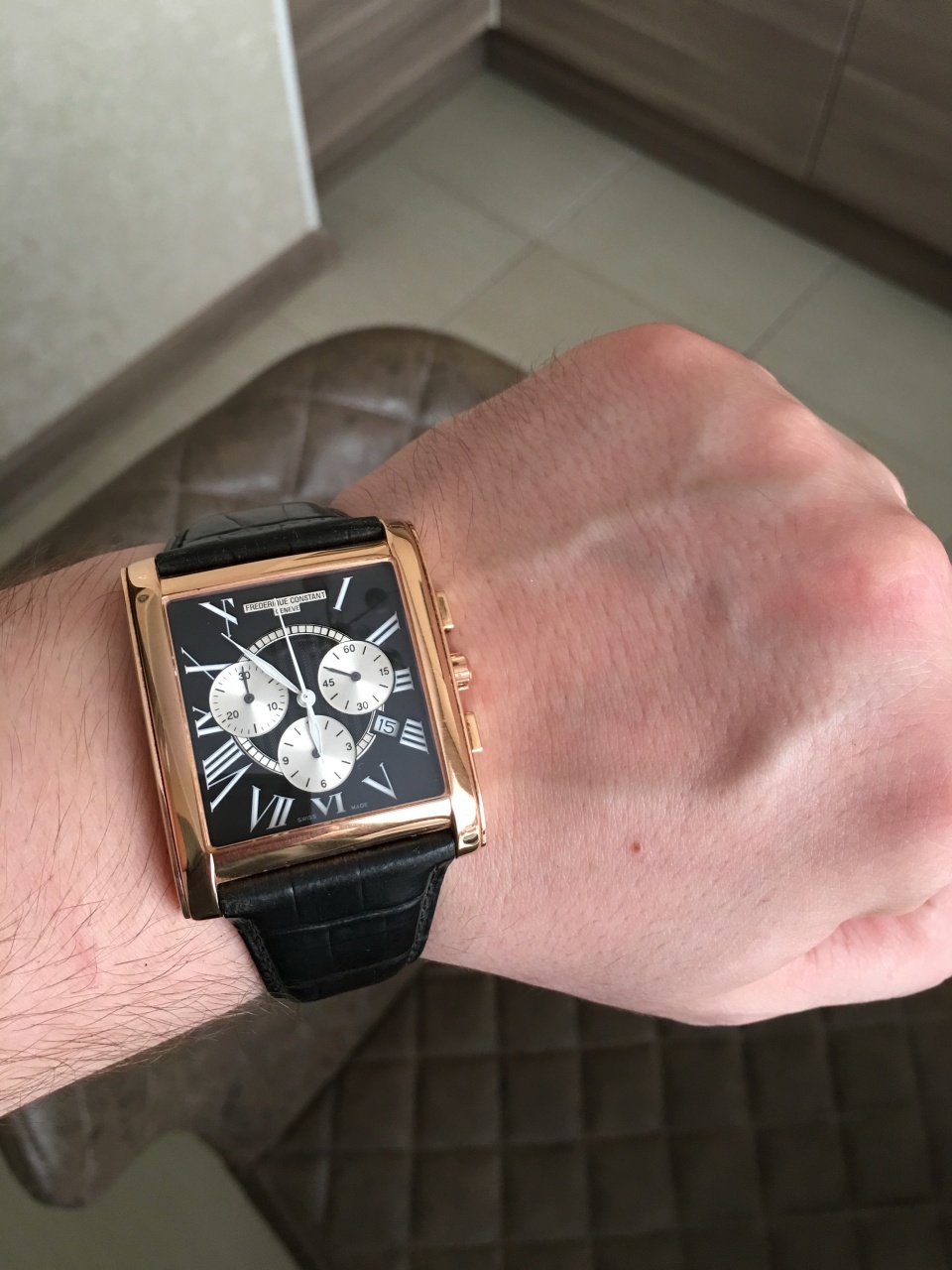 Frederique Constant Carree FC-292BS4C26 в хороешм состоянии. Максимальный размер в этой модели. На фото моя рука 19,5 см в окружности.