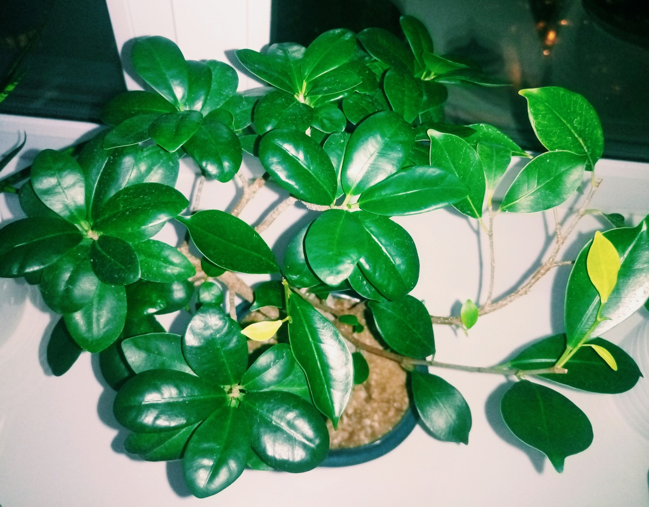 Баньян здоров, без нюансов, пространства плошки хватит на три четыре года - пересадки не требуется. в уходе не прихотлив (поделюсь опытом) - можно на подарок. Освобождаю подоконник.