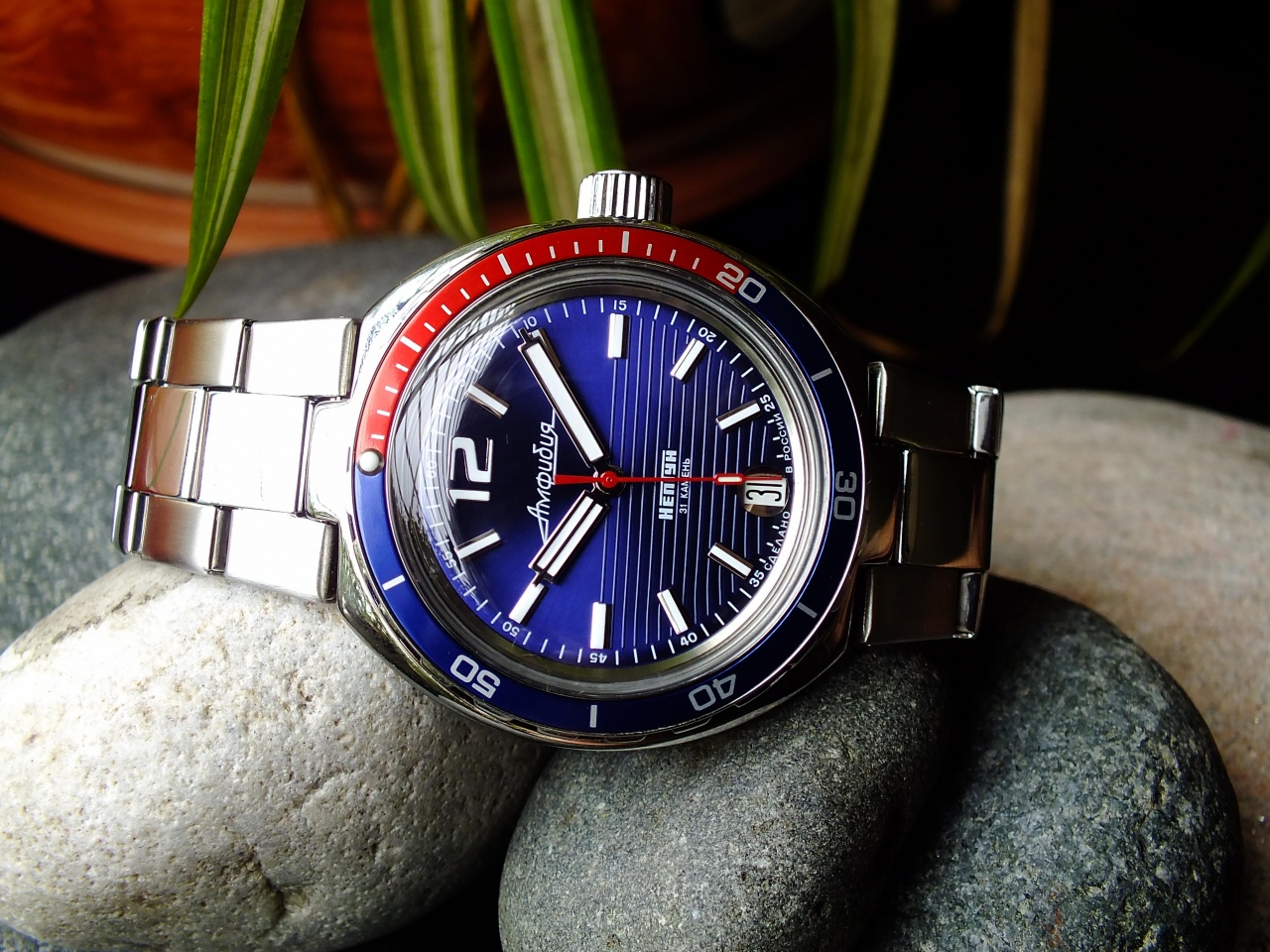 Новые и достаточно редкие мужские российские механические с автоподзаводом наручные часы Восток Амфибия Нептун 960759.
