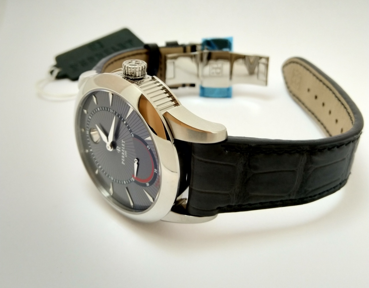 Механизм: Perrelet P-111 с механическим автоподзаводом, функцией даты и индикацией запаса хода.