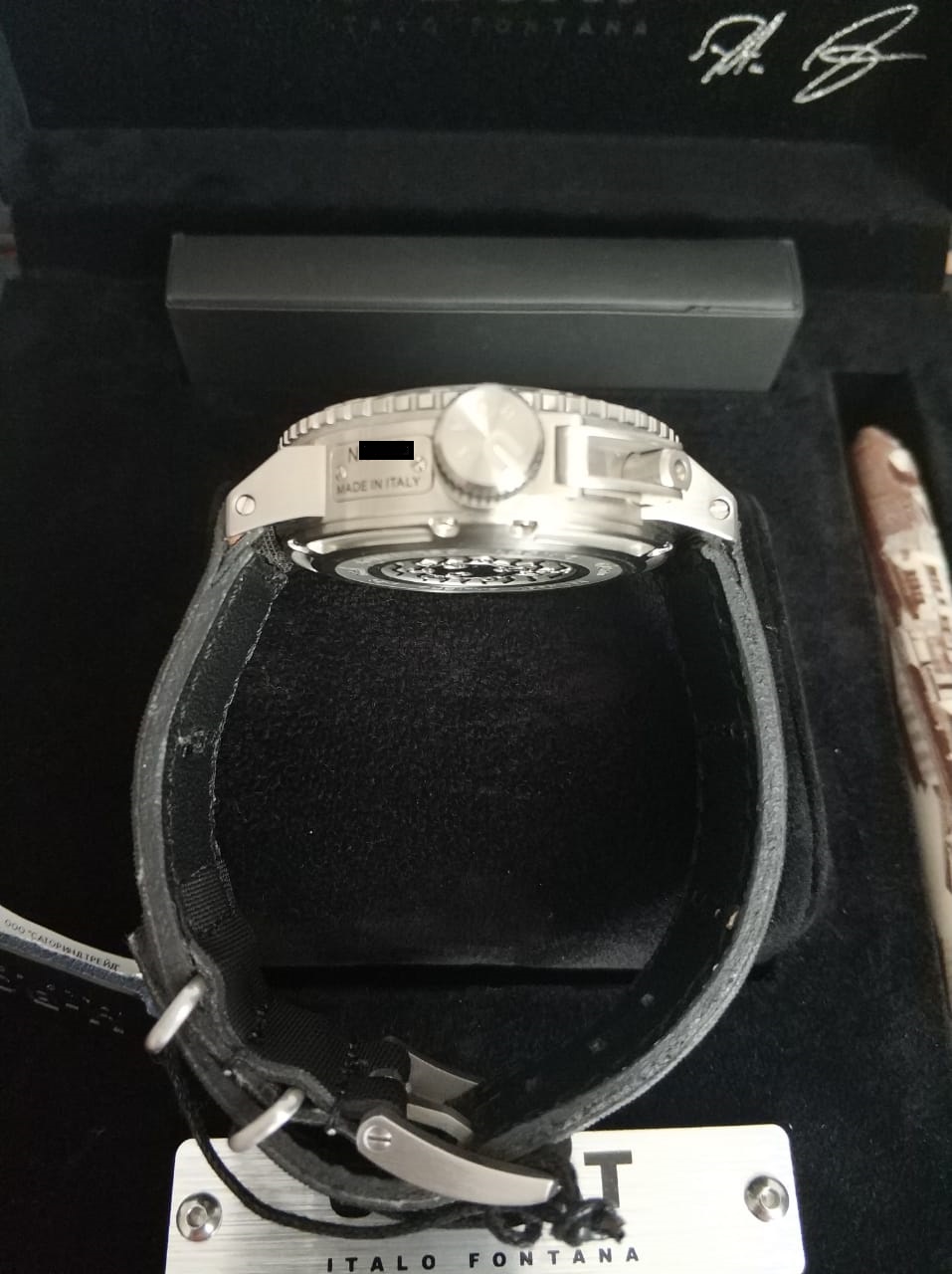 нержавеющая сталь AISI 316L, сатинированная отделка, отличительное положение головки подзавода на левой стороне корпуса. Головка снабжена запатентованным защитным устройством. Серийный номер выгравирован на табличке, закрепленной на боковой части корпуса. Диаметр: 46 мм.