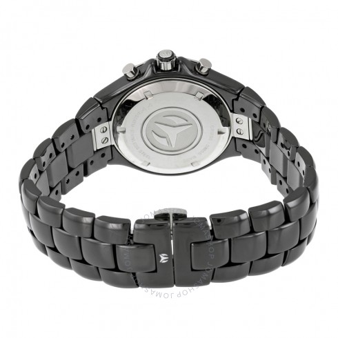 Механизм ETA G15.211. Кварцевый хронограф с секундомером. Индикация числа. Безель инкрустирован 34 бриллиантами 0,22К. Циферблат инкрустирован 10 бриллиантами 0,1К. Браслет из высокотехнологичной керамики. Диаметр корпуса 40 мм.