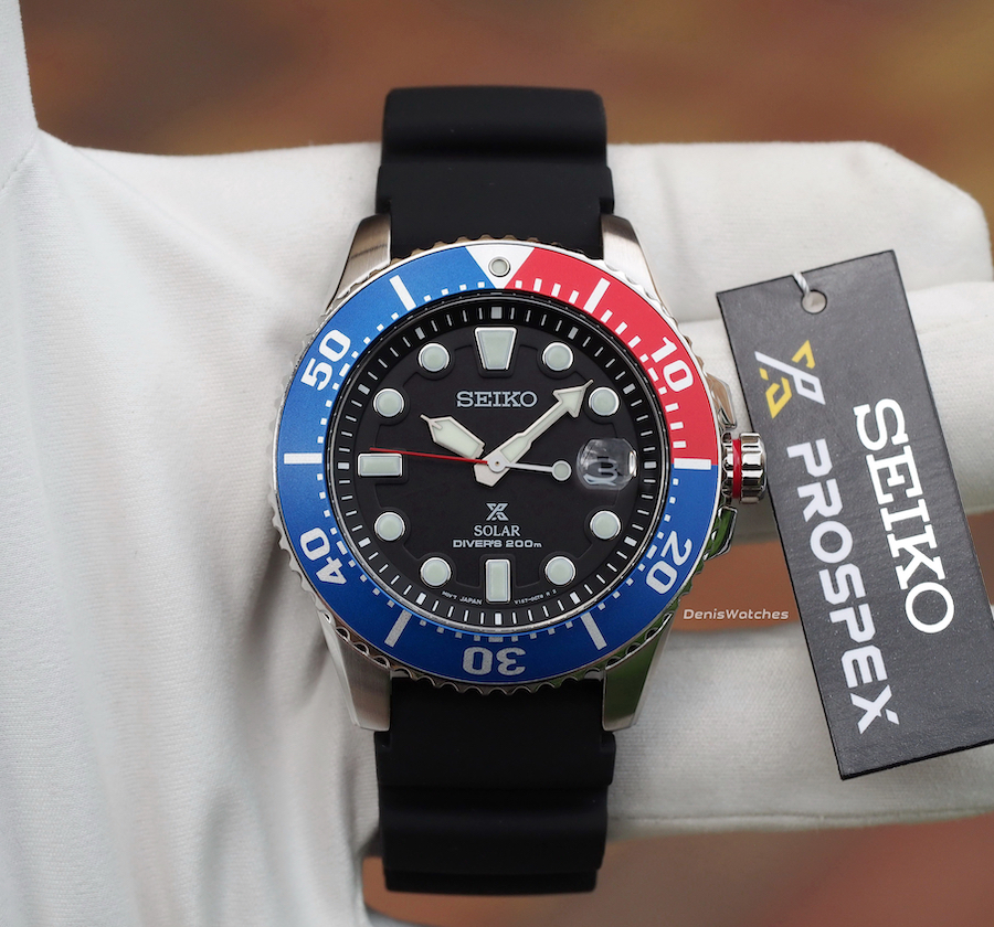 Классический дайвер в расцветке PEPSI на солнечной батарее от Seiko
