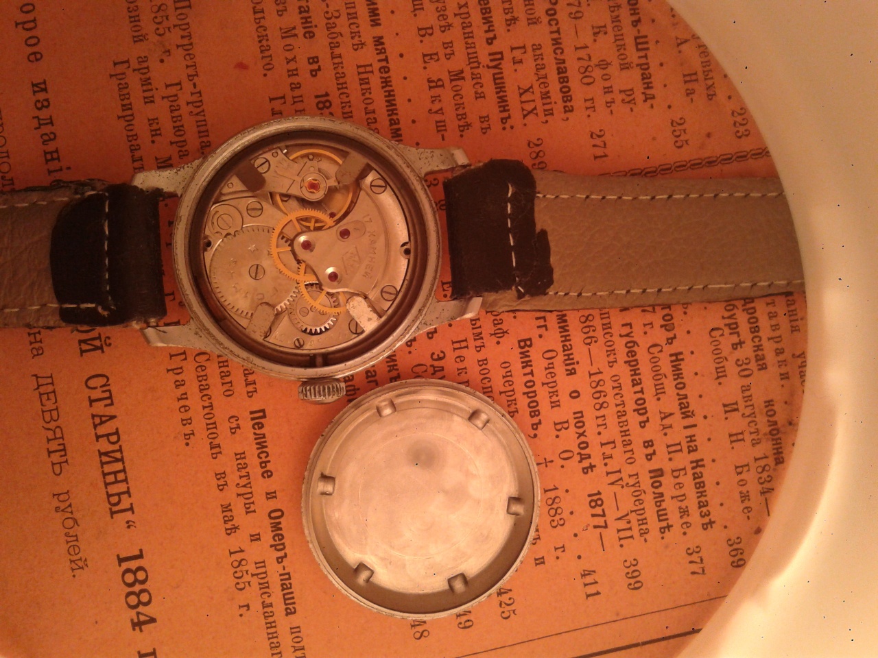 Этот механизм 1958-62 гг. У меня есть основания предполагать, что родной механизм поменяли на более поздний. Корпус - нейзильбер, никакой часовой стали не существует. Корпус 33 мм, а не 35.