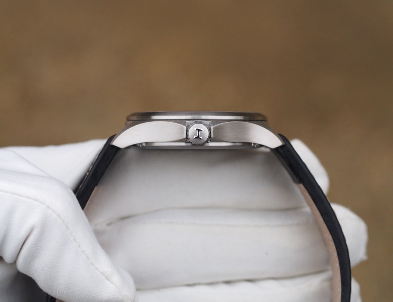 Стальной корпус, все в практичном сатине, защитные выступы у заводной головки