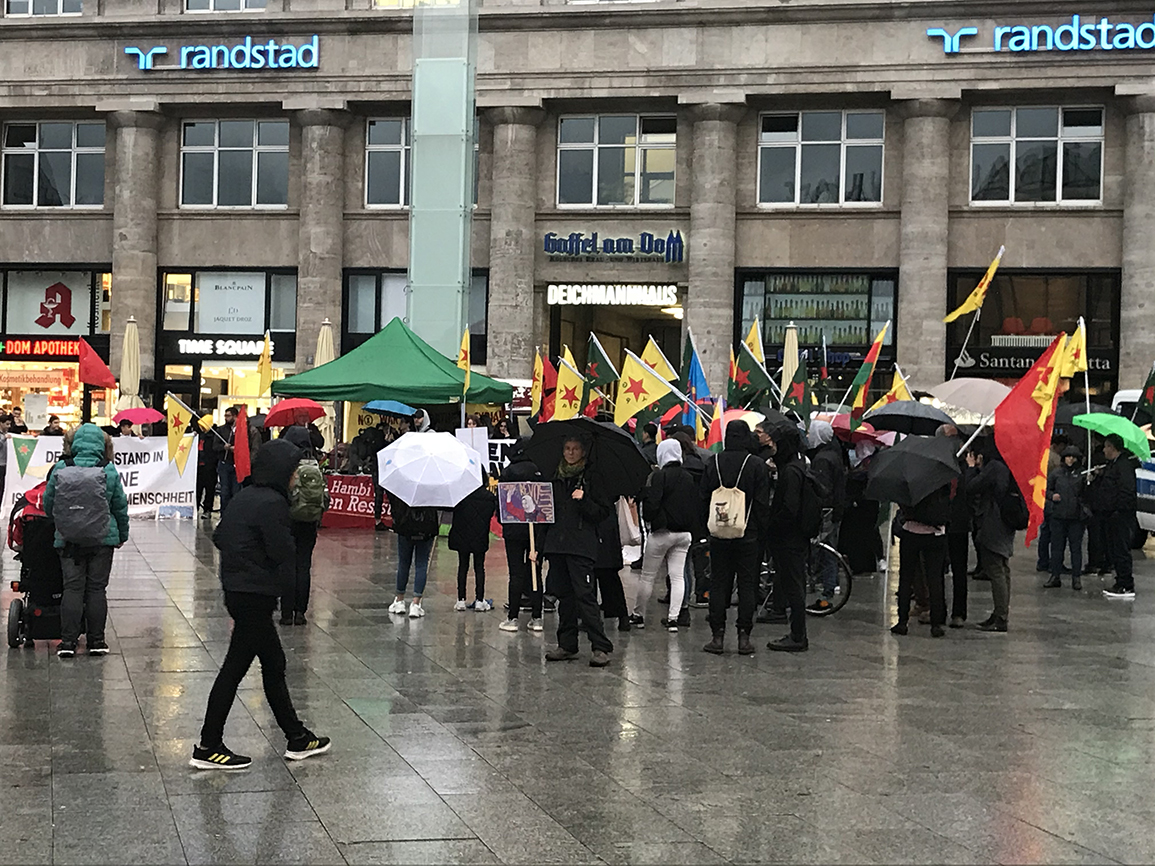 вернулся наконец, на вокзале курды под дождем митингуют против турок.