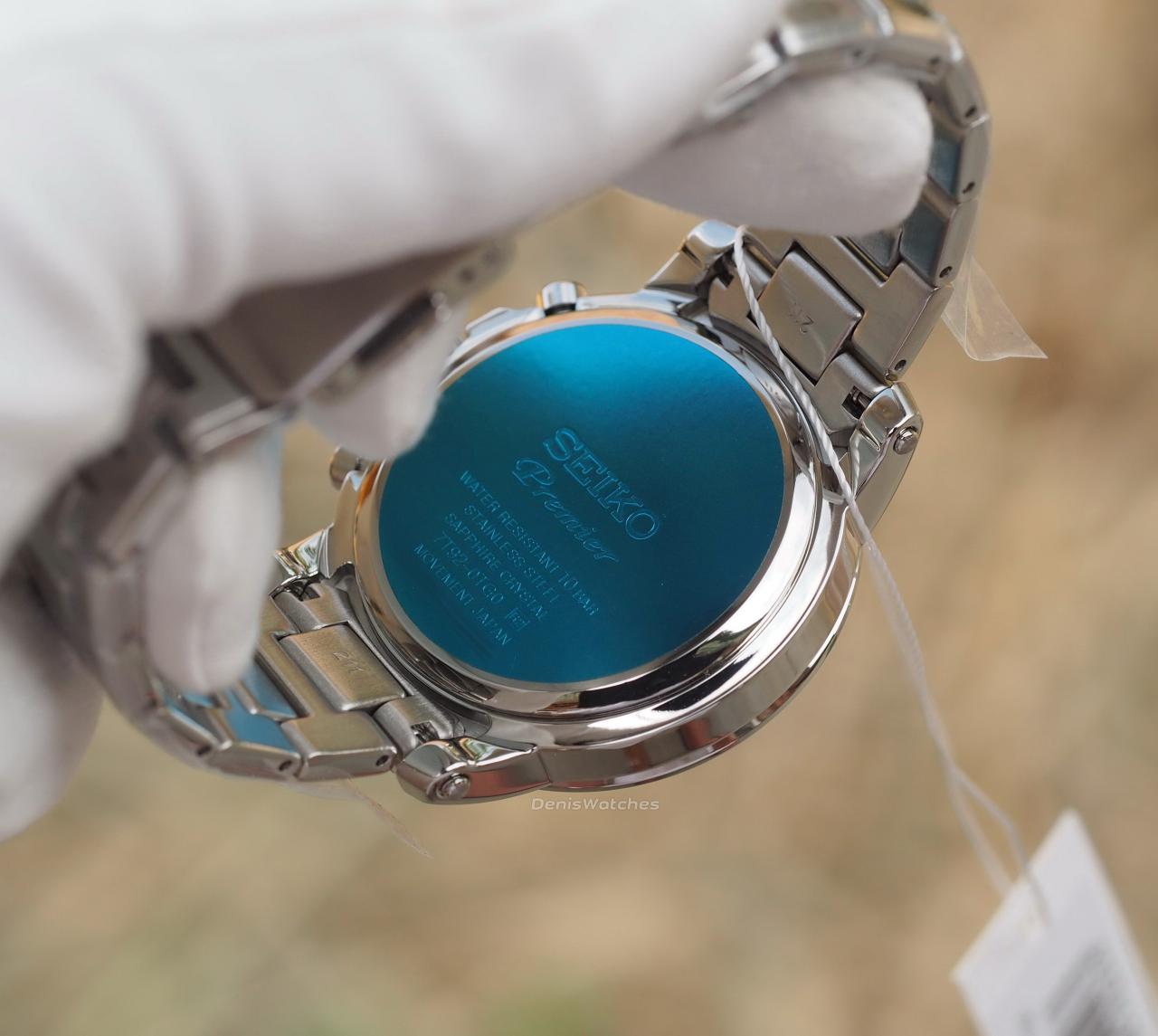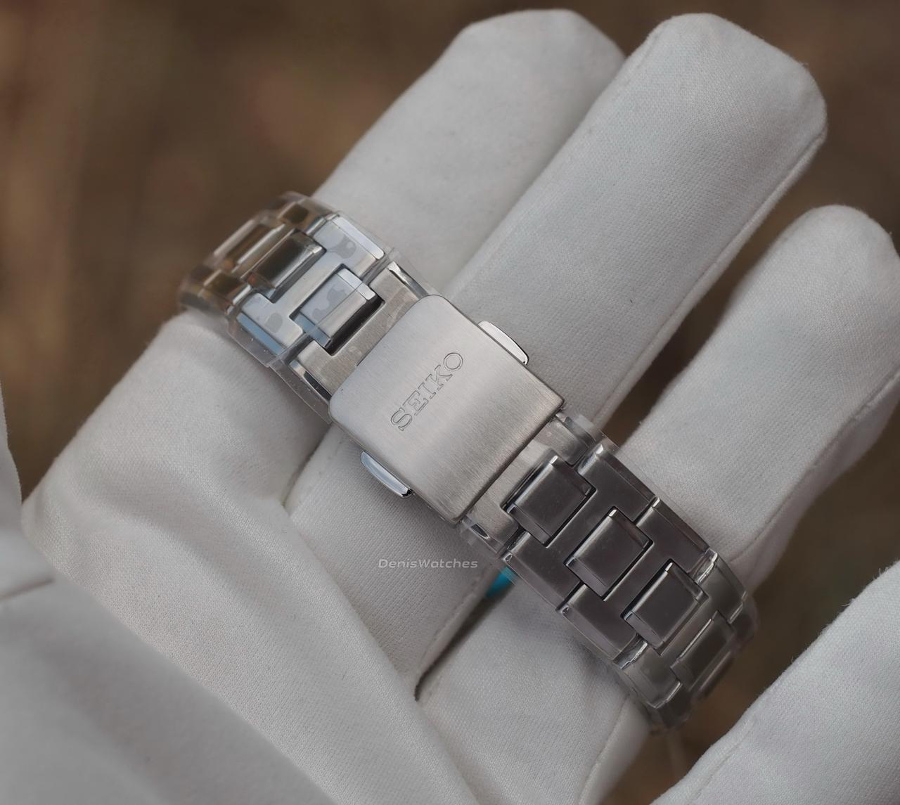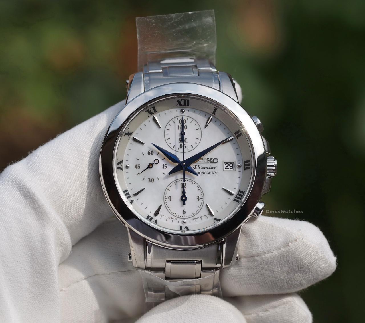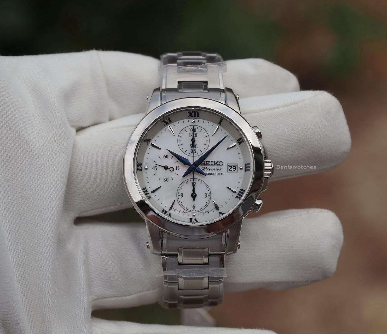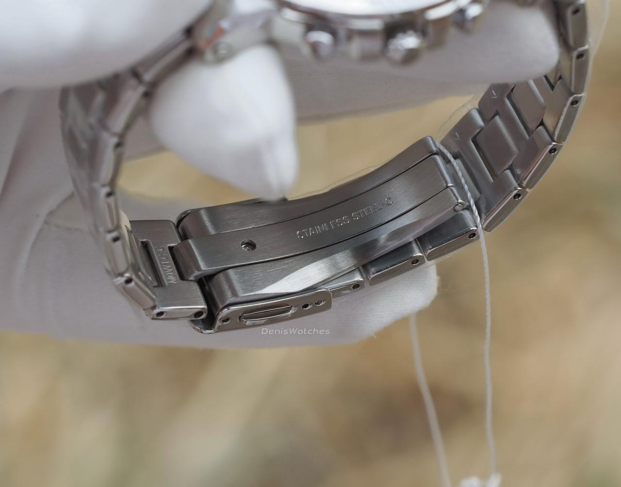 Светлый перламутровый циферблат отлично сочетается с синими лаковыми стрелками