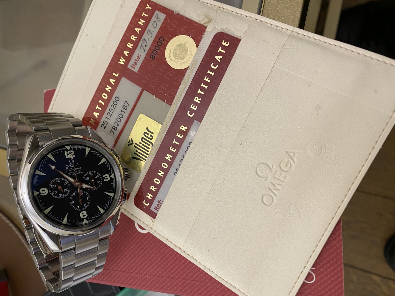Шикарный крупный хрон от Omega! Браслет длинный! Часы после полировки и репассажа! Потрясный циферблат с люминесцентными арабскими цифрами! Есть следы носки на внешнем антиблике , по желанию можно их убрать!