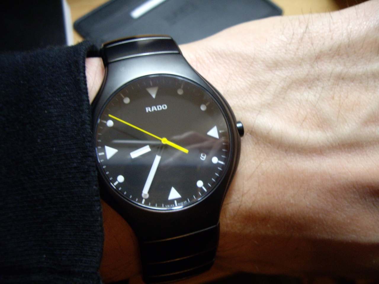 Уважаемые коллеги, приобрел Rado True Sport - хочу поделится впечатлениями - порадовала так называемая "сатинированная" поверхность браслета и корпуса часов - сохранив гладкость матовая поверхность керамики не бликует и отсвечивает глянцем - такой "аскетизм" в целом производит хорошее впечатление... Общая лаконичная эстетика и компоновка элементов на циферблате выше всяких похвал - ничего лишнего, из всех просмотренных моделей эти часы показались наиболее сдержанными и мужскими... В общем могу рекомендовать... Сам покупал в "Консуле"...
