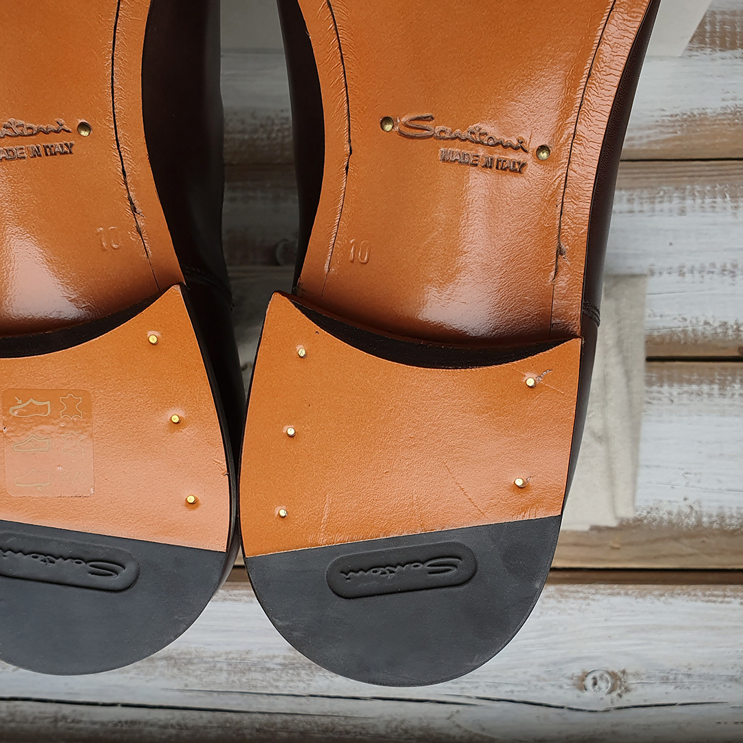 Подошва из комбинации кожи и резины с прошивным креплением к верху.
