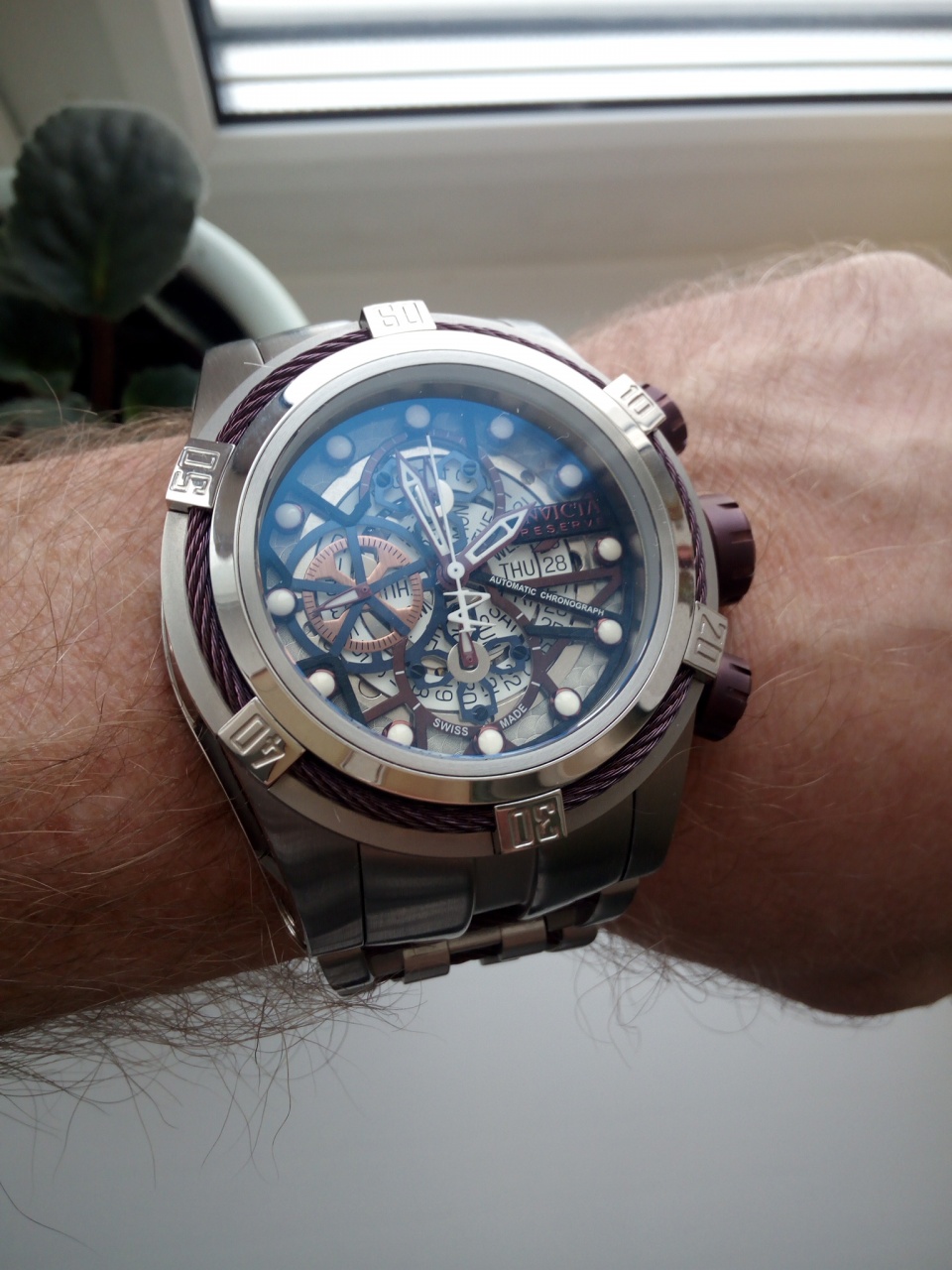 Есть особенность конкретных часов: иногда при откручивании ЗГ сбивается день недели, так как он настраивается кручением в ту же сторону, что и откручивание ЗГ, на функционал никак не влияет, все равно, если часы встали и вы откручиваете ЗГ, то будете подводить и дату и день недели. Когда часы идут, то и дата и день недели меняются корректно, хронограф так же без нареканий.