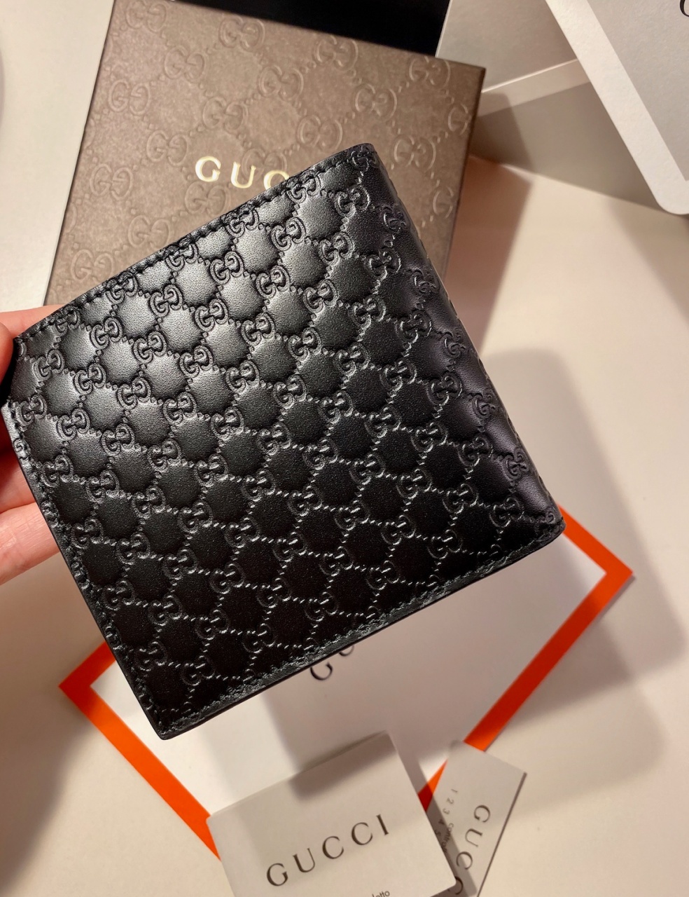 GUCCI мужской бумажник. Новый. Кожа с тиснением Signature GG. Цвет: чёрный