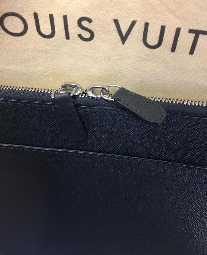 - Кожа Taiga с неброскими тиснеными инициалами LV, подкладка из ткани и отделка из кожи Taiga;