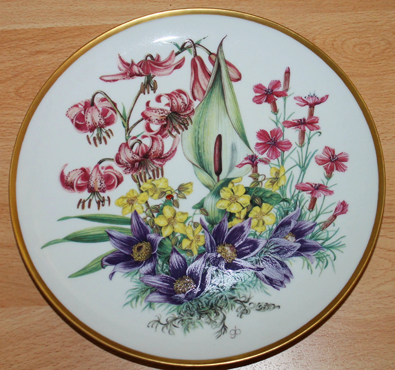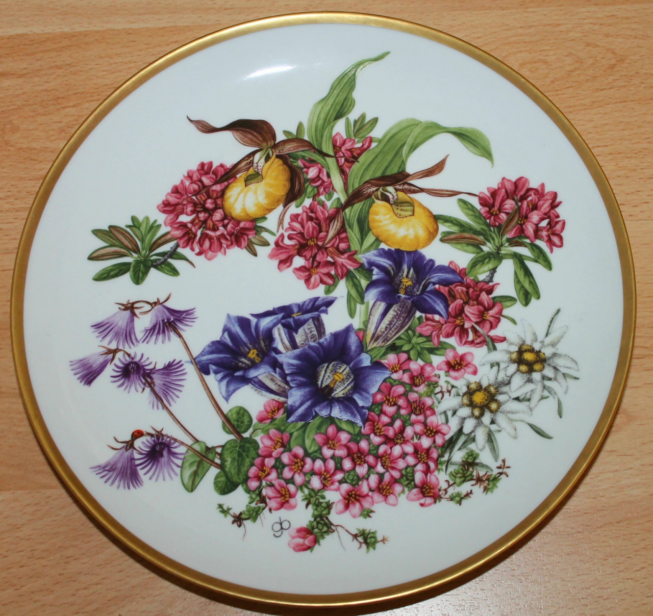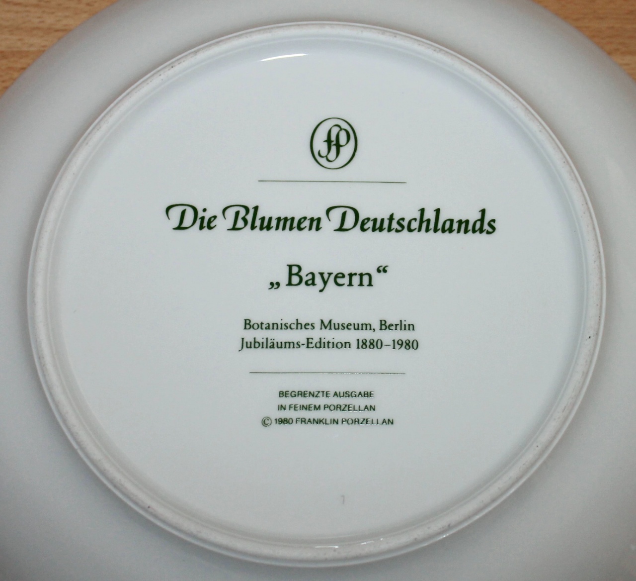 Цветы Германии.По гербариям 1880 г.Ботанического музея в Берлине.(Ботанический сад и ботанический музей Берлин-Далем).Изготовитель Franklin mint. 1980 ,диаметр 22,5 см.В отличном состоянии без склов,трещин,царапин.