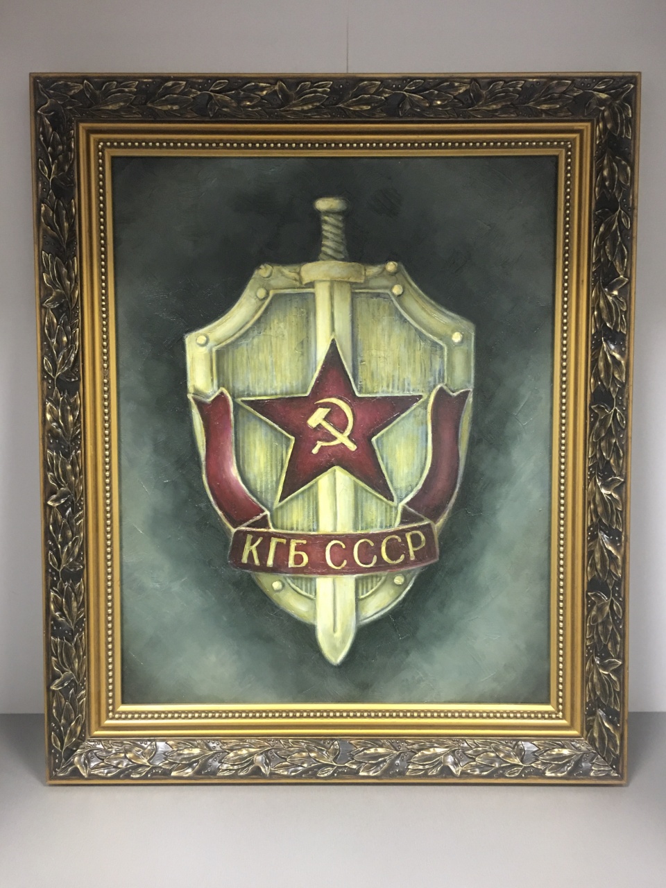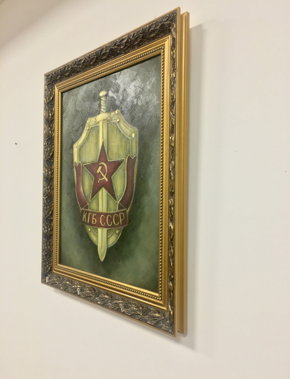 Вашему вниманию предлагается Картина (холст, масло, натуральный деревянный багет) с гербом КГБ СССР в классическом исполнении в хорошей дорогой деревянной раме. Шикарный подарок руководителю любого уровня, ветерану данной службы или просто человеку со вкусом. Украсит любой интерьер, как офиса так и квартиры или загородного дома, кабинета или гостиной, а также станет дополнением коллекции по теме.